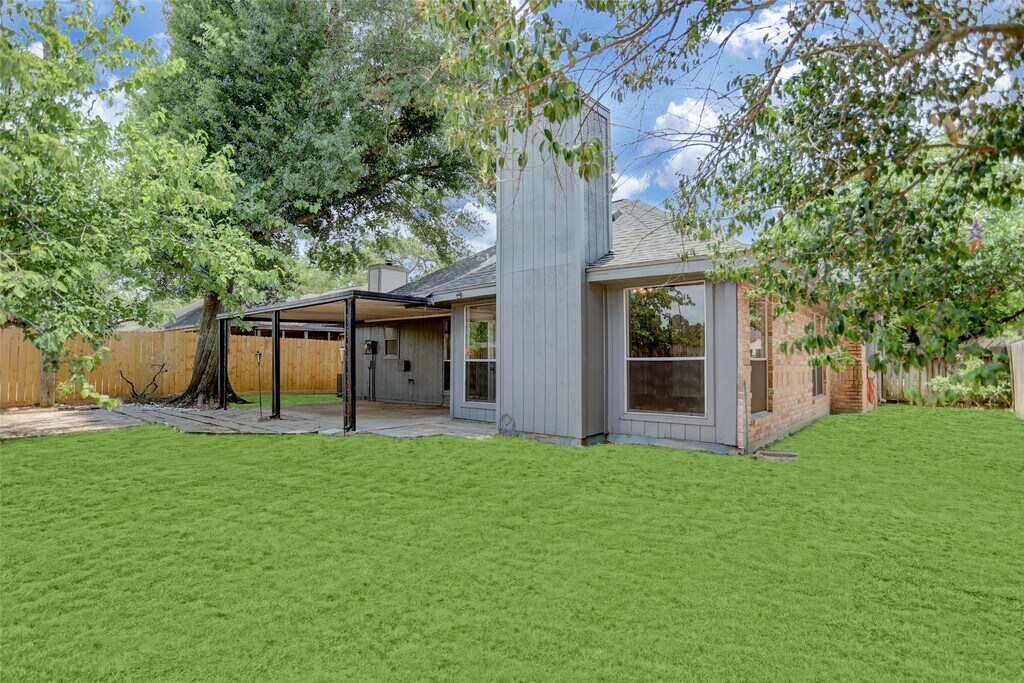 Updated,spacious home with 2 car attached garage and shady parking. Large,updated kitchen with granite counters and gas range. Breakfast bar separates kitchen from bay window breakfast area. Bright and sunny! Open-plan living and dining area with fireplace and glass doors to covered back patio. Master suite with double sinks and large shower. 2 secondary bedrooms with ceiling fans. Vinyl plank and tiled floors throughout. No carpet in this home! Utility room located between garage and hallway. Fenced back yard. Klein school district. Close to major freeways and shopping malls. No pets allowed. MLS# 9925799