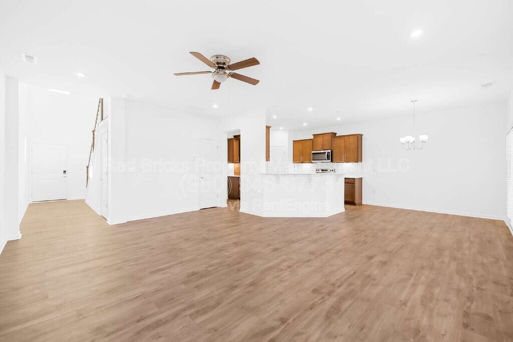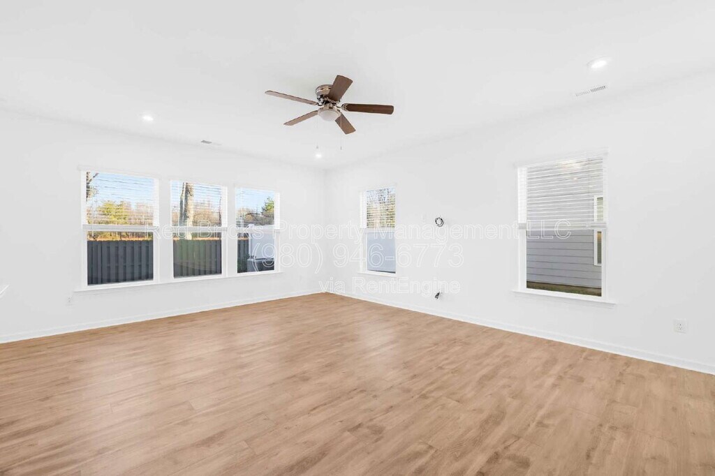 This Like-New, 2-story End-Unit Townhouse in the Pringle Towns community, near Charlotte Premium Outlets, will be Available starting March 15th. The home offers 3 bedrooms and 2.5 bathrooms across 1,856 square feet, featuring a welcoming front porch, a private backyard with patio, and a two-car front-entry garage. The main level showcases an open-concept layout with a spacious family room. The kitchen is equipped with stainless steel appliances, a tile backsplash, a two-tier island, and a pantry, along with a breakfast and dining area and a convenient half bath. Upstairs, the primary suite includes a walk-in shower and a large walk-in closet, along with two additional bedrooms, a full bathroom, and an in-unit laundry. Residents will enjoy easy access to I-485, I-85, and I-77, and are just minutes from the airport. The home is also conveniently located near shopping, dining, and upcoming retail developments. Water, Sewage, Internet, Lawn maintenance and HOA fees are covered by the owner. Refrigerator, washer, and dryer are included at no extra cost. Electricity is tenant's responsibility. A maximum of two pets are allowed (dogs only). Non-aggressive breeds over two years old may be considered on a case-by-case basis with the owner’s approval. Pet rent is $25 per month for each pet. All applicants 18+ must pass credit and background checks, provide proof of funds, and pay a non-refundable application fee. Minimum 1-year lease required; no subleasing. Security deposit: 1 month for credit above 650, 2 months for credit above 600. By submitting your information on this page you consent to being contacted by the Property Manager and RentEngine via SMS, phone, or email.