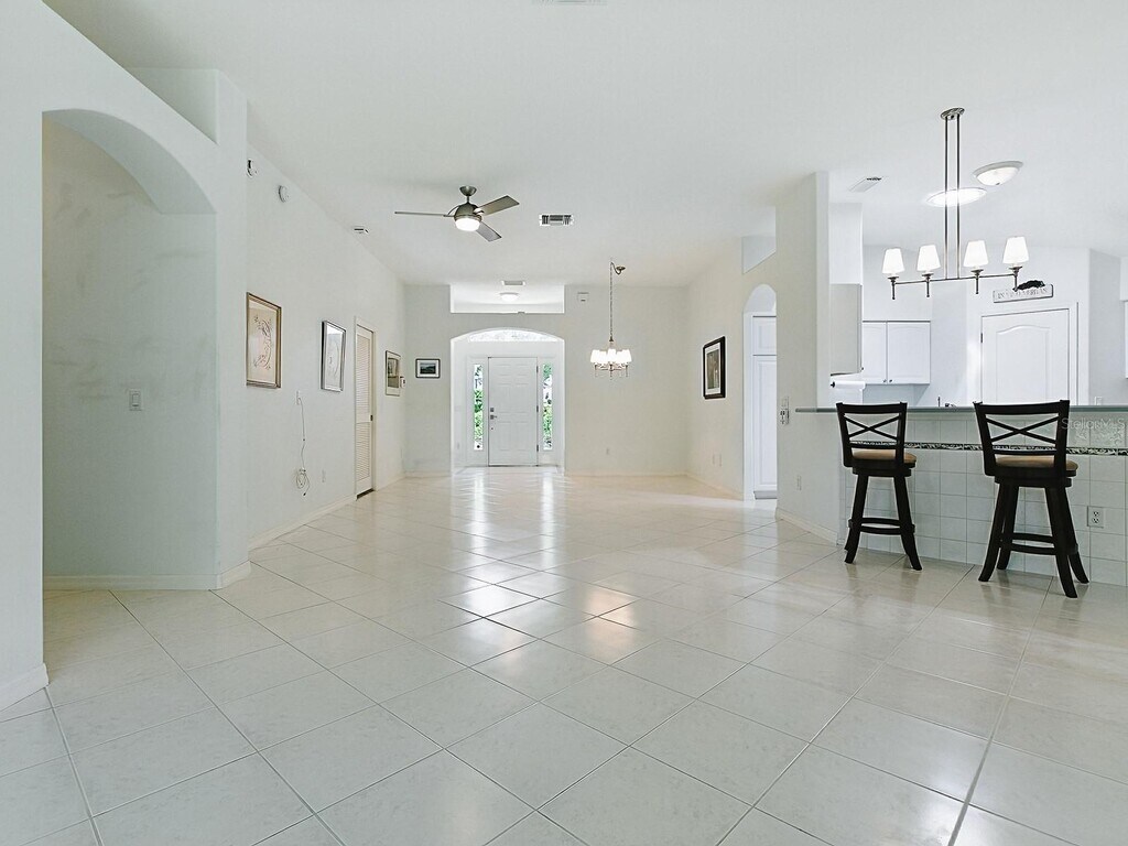Beautiful cul-de-sac location with wooded backyard view. Custom 3 bed, 2 bath home. Spacious kitchen includes Corian countertops, raised-panel cabinets, and large walk-in pantry. Enclosed lanai in back of home with additional open patio area for grilling out. Primary bed has large walk-in closet, and primary bath has dual vanity sinks, walk-in shower, and jetted soaking tub. Indoor laundry room with washer and dryer. Close to the Villages amenities, Nancy Lope Country Club, and several dining and shopping options.