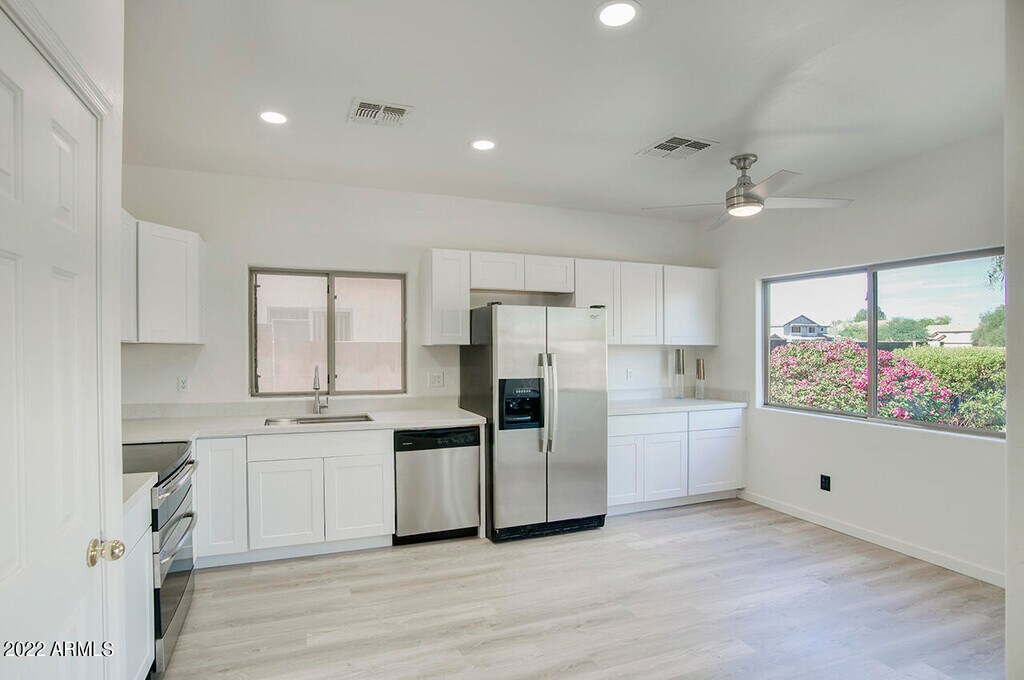 Absolutely stunning complete remodel this is your chance to live in a home that feels brand new! Also available for Sale MLS #6924944 Every surface has been beautifully updated with quality finishes and thoughtful design. Highlights include: *Brand-new kitchen with white shaker cabinets,quartz countertops,stainless steel appliances,and pantry *All new bathrooms with modern tile,new showers,tubs,vanities,toilets,and fixtures *Freshly painted interior and exterior with new flooring throughout *New AC unit for comfort and efficiency *New Hot Water Heater *New washer and dryer included *Spacious great room and open layout with split floor plan featuring 3 bedrooms and 2 bathrooms *Primary suite retreat with dual sinks,soaking tub,separate shower,private toilet room and large walk in closet. Enjoy low-maintenance outdoor living with a backyard that opens directly to a greenbelt park perfect for relaxation and recreation. The Cordova Estates community offers playgrounds,parks,and sweeping views of the nearby South Mountain Preserve. Conveniently located near the 202 and I-10 freeways,shopping,dining,and schools (including Sun Canyon Elementary just blocks away). This beautifully renovated home is move-in ready and located in an A+ location. Don't miss it!!