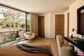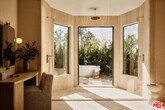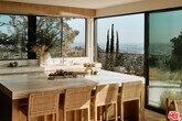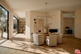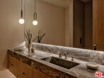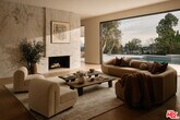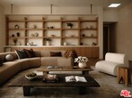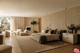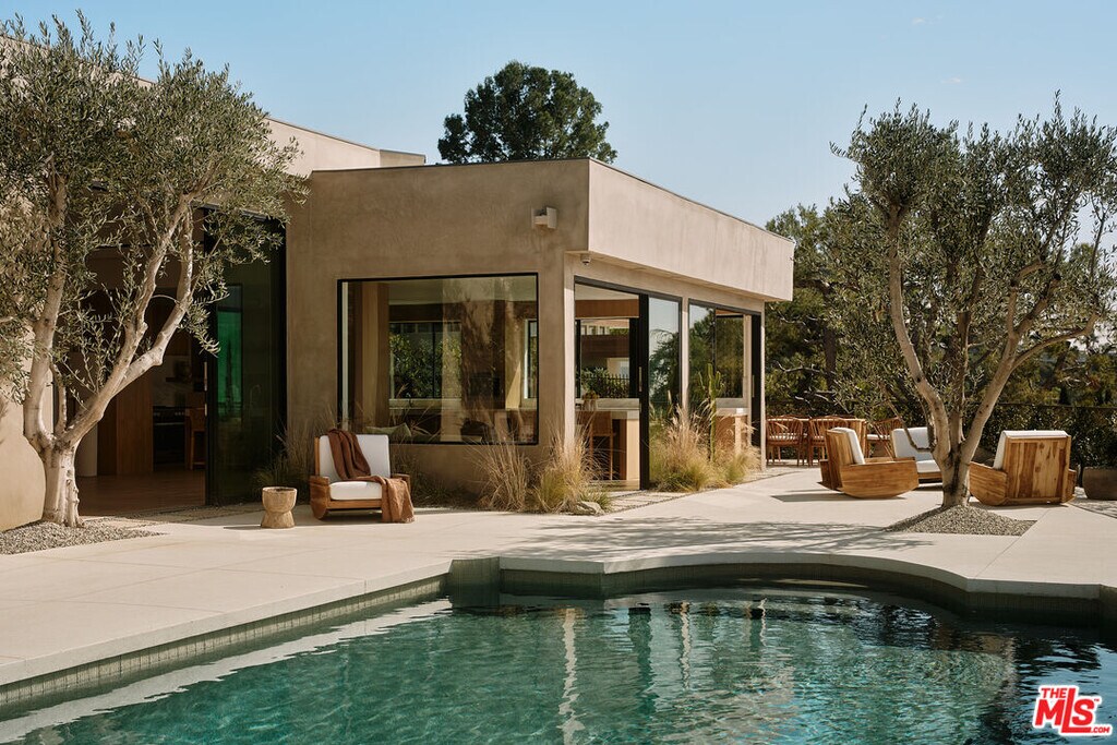 An organic, modern gem reimagining Ibiza living. A rare offering in one of the city's coveted Trousdale streets. Perched on a promontory, this exceptional residence blends seamlessly with its natural surroundings. Earthy tones and natural materials, including richly toned woods, marble, and travertine, create a warm and sophisticated atmosphere throughout. A private gated entrance opens to a long driveway, leading to a motor court framed by mature olive trees. The grand 12-foot-tall front door sets the stage for the architectural brilliance found within. Spanning 6,309sqft, the open floor plan flows effortlessly through the main living areas. The living and dining rooms are elegantly divided by a striking double-sided fireplace, while a library den connects seamlessly with the gourmet kitchen and outdoor spaces. The backyard is a true showstopper, extending horizontally to link the main public rooms and primary suite. An oversized pool, expansive terrace, and a large yard offer breathtaking panoramic views of the Santa Monica Mountains, Ocean and city skyline. Features include six bedrooms, nine bathrooms, and impeccable design. Experience unparalleled beauty, privacy, and elegance. Shown only to prequalified buyers. MLS# 25568161