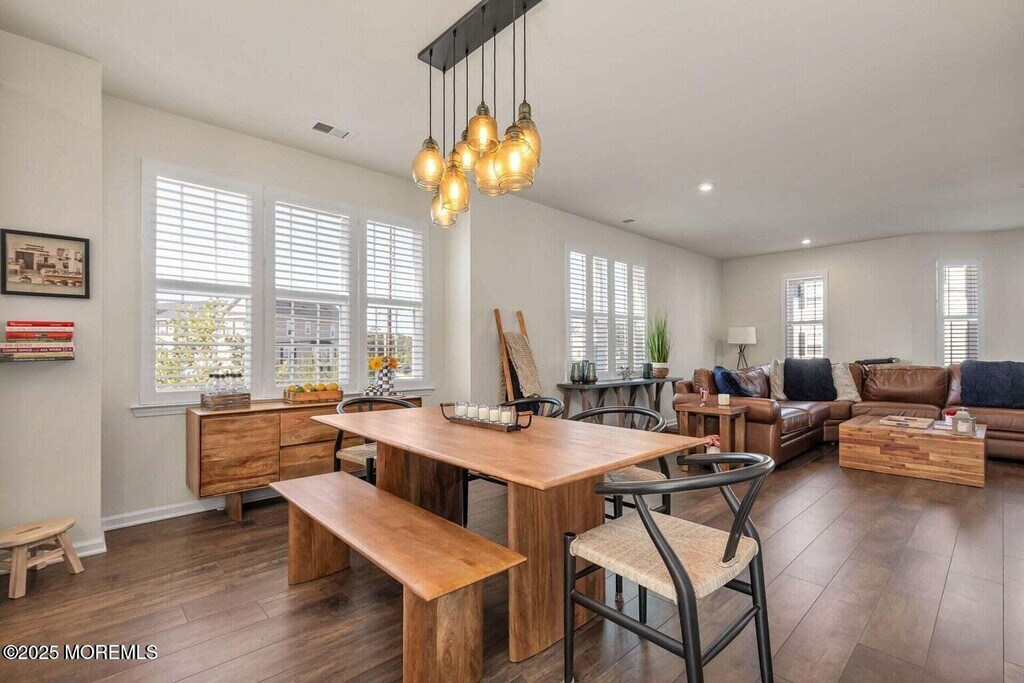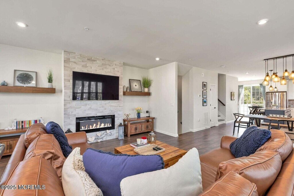 Welcome to this premier end-unit townhome-style condo offering 2,216 sq. ft. of modern living. Built just four years ago,it features 4 bedrooms,3.5 bathrooms,and a two-car garage. Enjoy a private location with no rear neighbors,wide-plank hardwood floors,and upgraded plantation shutters throughout. The gourmet kitchen includes stainless steel appliances,granite countertops,a farm sink,and a custom coffee barperfect for entertaining. The first-floor bedroom with full bath offers flexibility as a guest suite,office,or gym. Upstairs,spacious bedrooms and a luxurious primary suite create a relaxing retreat. Located minutes from shopping,dining,and major commuting optionsincluding the Garden State Parkway,train,and ferry to NYC