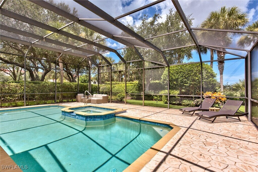 AVAILABLE FOR SEASON 2026!!! Beautiful POOL and SPA home in the highly desirable community of Pelican Marsh! Amazing location,amenities,private pool and a comfortable home - perfect for your winter getaway. 3 bedrooms,3 bathrooms,a loft,two car garage and a large screened in lanai with a pool and spa.