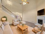 Don't miss out this charming 3-Bedroom Townhome nestled in prime Lewisville Location – A True Turnkey Gem! This beautifully updated townhome offers the perfect blend of comfort, style, and convenience. As you step inside, you're greeted by a bright living room with soaring vaulted ceilings and a cozy gas fireplace, creating a perfect ambiance for relaxation or entertaining. The home features sleek vinyl flooring throughout, adding a modern touch to every room. The open floorplan leads into the kitchen with freshly painted cabinets, recessed lighting (2023), and a refrigerator that conveys. The expansive laundry room includes bonus shelving for pantry and storage. Enjoy continuous hot water for the entire home with the upgraded tankless water heater. The upstairs primary bedroom offers a serene retreat with window seating, a walk-in closet, and a luxurious garden tub in the master bath. Additional upgrades include a new AC compressor and a smart, ultra-quiet garage door opener with battery backup (2023). Extra storage space and ceiling-mounted storage rack in garage. Located just minutes from DFW Airport, lakes, scenic walking trails, vibrant shopping, and dining options, this townhome is truly in the heart of it all. Whether you're looking for a peaceful retreat or easy access to everything the area offers, this home has it all.