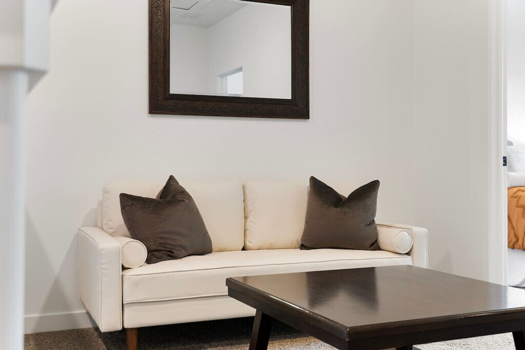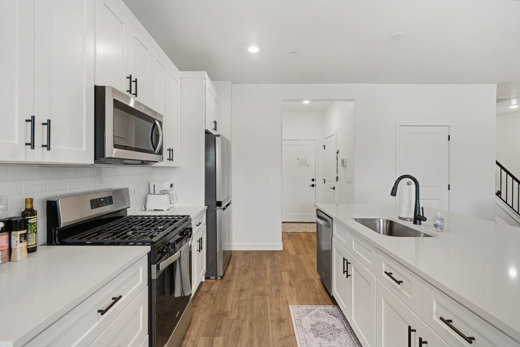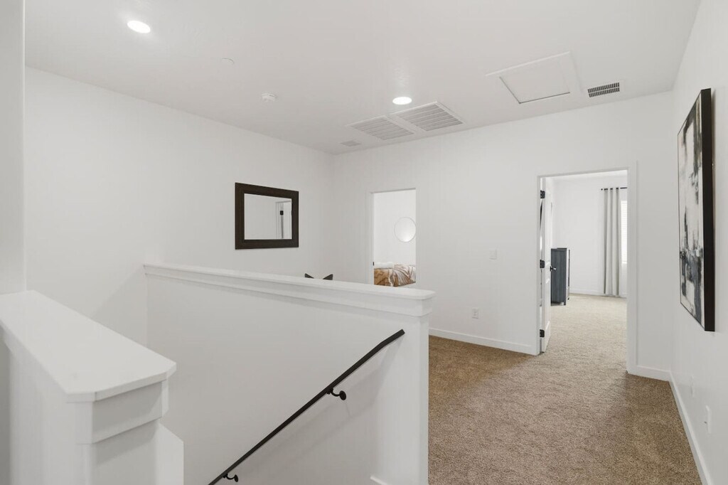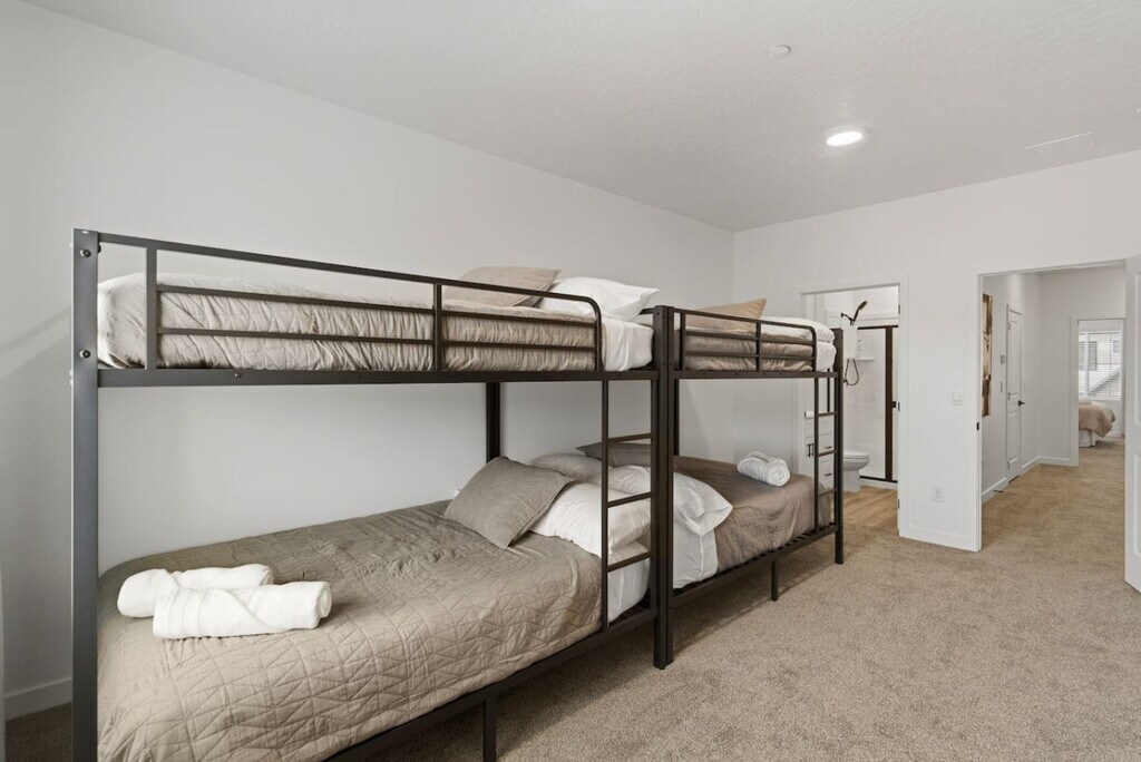 Feel at home in this spacious Southern Utah retreat, ideal for families and group trips. This home features four private bedrooms, each with its own en-suite bathroom and TV. The main floor features a welcoming entryway that opens into the living space with vaulted ceilings and a 75-inch television, a fully equipped kitchen, and a dining area designed for gathering. Upstairs, all four bedrooms are conveniently located, each featuring a private full bathroom. The cozy upstairs secondary living area is ideal for kids, family game nights, or quiet relaxation. An upstairs laundry room adds extra convenience for extended stays, business travelers, and road trip guests. A stairlift is installed on the main staircase to assist guests who may need support accessing the upstairs bedrooms. Traveling with a larger group? This trusted partner manages a rare collection of 5 nearby homes, allowing everyone to stay close while still enjoying their own space. Pets are welcome at the cost of $10 per pet, per day. Enjoy shared community amenities including a pool, pickleball courts, cornhole, and ping pong. Quail Creek State Park and Sand Hollow State Park for boating, fishing, watersports, and off-road adventure are 13 miles away. Snow Canyon State Park with hiking, red rock views, and trails is 19 miles away. Zion National Park, world-famous for stunning canyons and scenic drives, is 39 miles away. Nearby St. George Golf Courses include Green Spring Golf Course & Coral Canyon Golf Course (7 miles), Southgate Golf Club (11 miles), Sky Mountain Golf Course (13 miles), Sunbrook Golf Club (14 miles), and The Ledges of St. George (17 miles). No smoking or vaping is allowed on the premises. A $200 per day fee will be assessed for each day of the reservation if it is found that guests have been smoking or vaping on the premises. For unauthorized pets, a $250 fee will be assessed. Quiet hours begin at 10:00 PM each night and continue until sunrise. A $30 fee, per bin, will be assessed for unbagged garbage found in the bins. Guests enjoy access to fun, resort-style community amenities, including a community pool with shade and loungers, a game room, pickleball courts, cornhole, outdoor ping pong, walking paths and shared spaces. Two cars fit comfortably in the driveway. Street parking is not available in front of the homes. Overflow parking is located in small community lots at the end of each block. [SI]