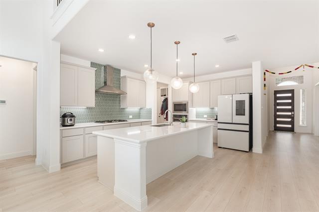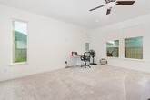NORTH FACING! Beautifully crafted floor plan with grand foyer upon entry. First floor is aptly designed with optimization in mind with office, formal dining, master bedroom, and guest bedroom with a bathroom and needless to say spacious living room and chef's kitchen. Kitchen boasts upgraded backsplash and lighting fixtures, additional cabinets. Master retreat includes extended master bedroom (approximately 40 sq ft) to give the luxurious feel. Upstairs, discover the additional secondary bedrooms alongside a media & game room, offering versatility. Completing the picture is a 3-car tandem garage, ensuring ample storage and maximizing efficiency throughout the home's design.
