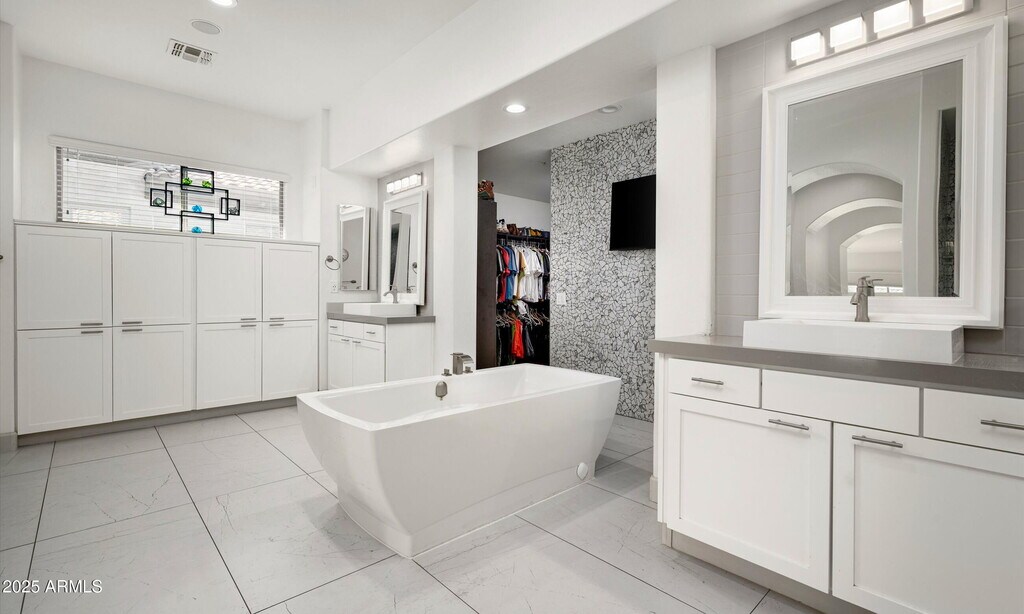 Rent to own! Solar Payment Included in Rent! Pets Welcome! This is an entertainer's dream and a rare opportunity for modern luxury living! As one of the largest single-level floor plans offered in the area,this stunning 4,342 SqFt home blends flexible living with stylish upgrades and a truly one-of-a-kind lifestyle. Currently configured as a 4 bed / 3.5 bath,the layout also features an open bonus room,separate office/den,and enclosed bonus room,all of which can be easily modified for up to 7 bedrooms. Inside,you'll find a crisp modern renovation with white and grey tones,a chef's kitchen w/ unique ''T'' island,stainless appliances,double ovens,quartz counters,and sleek pendant lighting. Every bath has been updated with new tile,fixtures,etc. The expansive owner's suite includes a re-imagined bathroom,dual walk-in closet. The expansive owner's suite includes a re-imagined bathroom,dual walk-in closets (one was added w/ a garage reconfiguration). Outside,the resort-style yard is sure to wow family and friends! The refinished pool with stone water features surrounds an "island" platform shaded by a pergola,creating an outdoor living experience you won't find anywhere else. You'll appreciate dual garages offering 3.5 spaces.