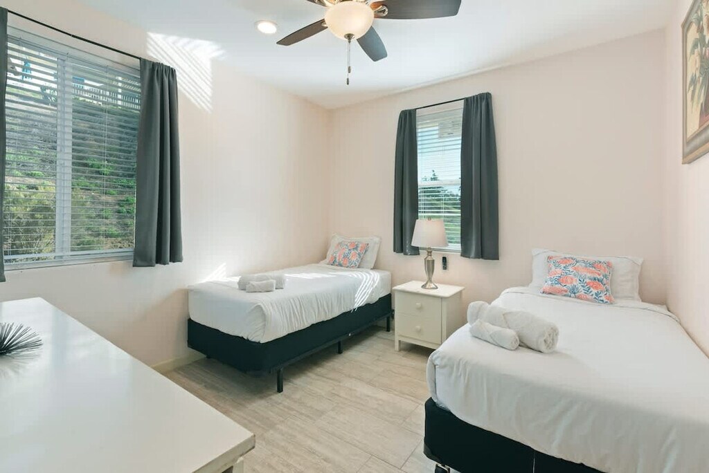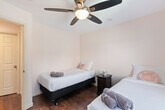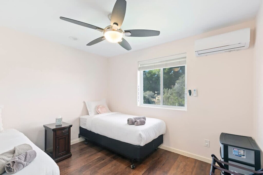 Feel at home in this spacious home located in Poway/Rancho Bernardo, offering a peaceful getaway with beautiful views. This family-friendly home features a fully equipped kitchen with new appliances, central air conditioning and heat, high-speed Wi-Fi, and a washer and dryer. There are a number of TVs in the rooms including the living room and bedrooms. The large backyard includes patio furniture and a barbecue. A coffee machine and coffee are provided. On-site parking is available for two cars. A crib and toys are available for families. Located in Poway/Rancho Bernardo, this home is near surrounding vineyards and wineries, and scenic trails. This home is handicap friendly, with a ramp leading up to the front door. Master Bedroom: King bed with en-suite Bedroom 2: Queen Bed Bedroom 3: 2 Twin Beds Bedroom 4: 2 Twin Beds Bedroom 5: 2 Twin Beds [SI]