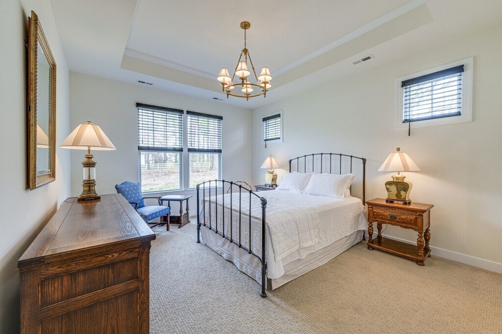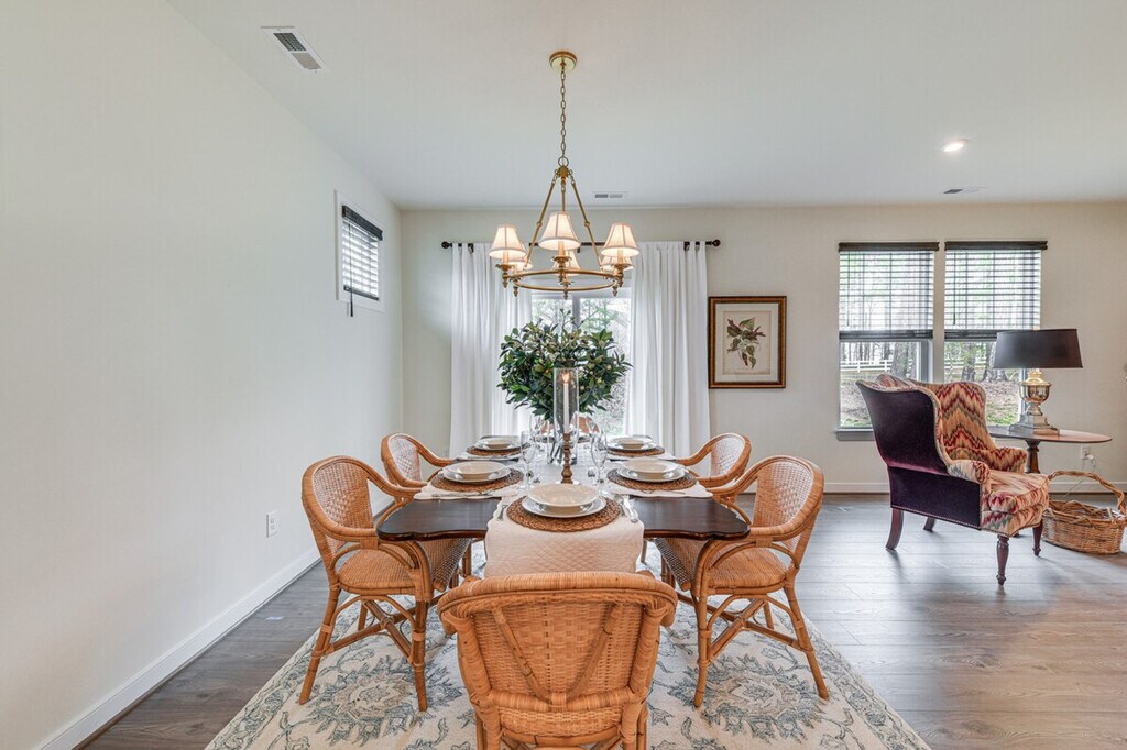 Feel at home in this 2-bedroom, 2-bath vacation rental in Chester, located in the Meadowville Landing community. This single-story home requires one small step for entry. This home offers antique furniture, Smart TVs, an en-suite bath, a walk-in closet, a shower/bathtub, and a dining table. The fully equipped kitchen includes a dishwasher, microwave, stove/oven, dishware and flatware, refrigerator, cooking basics, and a coffee pot with starter coffee. You can also enjoy complimentary weekly housekeeping, linens, towels, complimentary toiletries, trash bags, paper towels, a washer, a dryer, central heating and air conditioning, and keyless entry. Guests have access to community amenities including a seasonal outdoor unheated pool open from Memorial Day to Labor Day, a clubhouse, and a fitness center. Free Wi-Fi and driveway parking for up to 4 vehicles are available. The garage is not available for guest use. Enjoy access to community amenities like the riverfront dock, river walk, playground, ponds and lakes. When you're not enjoying this home base, head out to explore historic sites, like the Henricus Historical Park, or spend some time on the shores of James River. You can also enjoy the yard with a pond view. Smoking, vaping, pets, events, parties, and large gatherings are not allowed. Additional fees and taxes may apply, and a photo ID may be required upon check-in. Includes a charming office for your remote work needs. [SI]