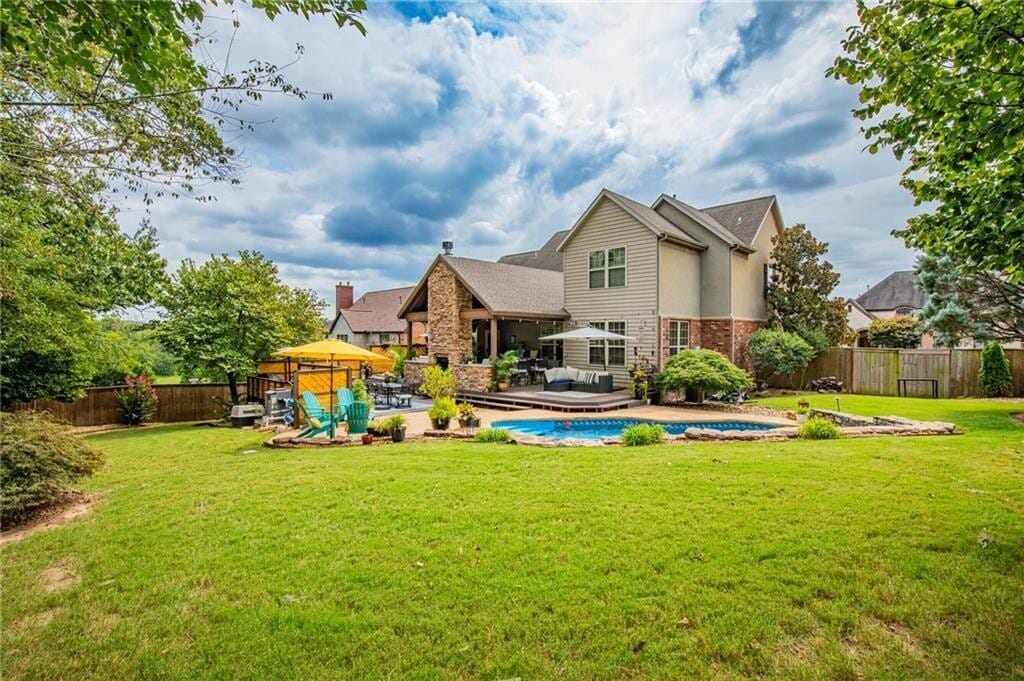 Exceptional home in the prestigious Windemere Woods. This residence embodies luxury & comfort. NEW trail in front of the neighborhood leading to Coler MTB trail & greenway. Conveniently located to I49, only minutes away from DTB and Walmart home office. This exquisite 5-bedroom, 3.5-bath home combines elegance and functionality. You'll be greeted by an expansive open kitchen and living area, boasting soaring ceilings. The thoughtfully designed floor plan features a formal dining room and dedicated office space, ensuring that every aspect of your lifestyle is catered to. Large primary suite on main level and spa-like bath, walk-in shower, jetted tub, dual sinks, & walk-in closet. This private outdoor retreat is an entertainer's dream with a covered patio, heated saltwater pool, hot tub, tv, fireplace, gourmet grill, and kitchen to create the ultimate backyard entertainer's paradise, perfect for gatherings all year round. This home has it all, leaving no detail overlooked. This is the one you've been searching for! MLS# 1328061