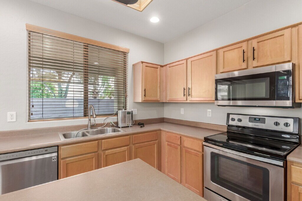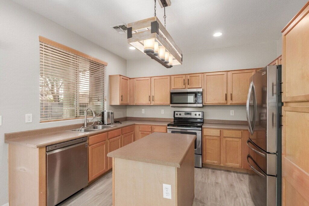 A must see in Surprise Farms. 3 bedroom 2 bath, Private Pool. House has an open floor plan concept, kitchen open to living room with view to backyard. Master suite offers Separate tub and shower. All new flooring and paint, All appliances included as well as Pool service included in monthly rent. By submitting your information on this page you consent to being contacted by the Property Manager and RentEngine via SMS, phone, or email.