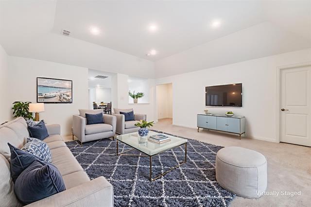 Discover the epitome of luxury living in the heart of Celina, TX with this stunning 5-bedroom, 2.5-bathroom down and 2.5- bathroom up residence. Tucked away on a quiet interior lot, this home offers a serene escape with close proximity to Tollway for access. Upon entering, a super functional floorplan designed to fulfill every lifestyle need. The peaceful neutral decor creates a calming ambiance, enhanced by an abundance of natural light that flows through expansive windows. Perfect for entertaining, the home features a seamless blend of open living spaces and cozy nooks, each designed for optimal versatility. The well-appointed kitchen, a true chef's delight, boasts SS appliances, modern cabinetry, and substantial counter and pantry. It leads gracefully into both formal and casual dining areas, making it ideal for grand occasions and intimate gatherings alike. The primary suite is a sanctuary of luxury, offering a spacious retreat complete with a spa-like bathroom and generous walk-in closets. Each additional bedroom has been thoughtfully designed with multiple ensuite baths for privacy and comfort. The expansive floorplan also offers separate office, media, loft and game spaces for multi-gen living. Additional upgrades include wired for EV in garage, water softener, kitchen fridge and washer and dryer optional. Move in Jan 17 2026. This home will not disappoint!