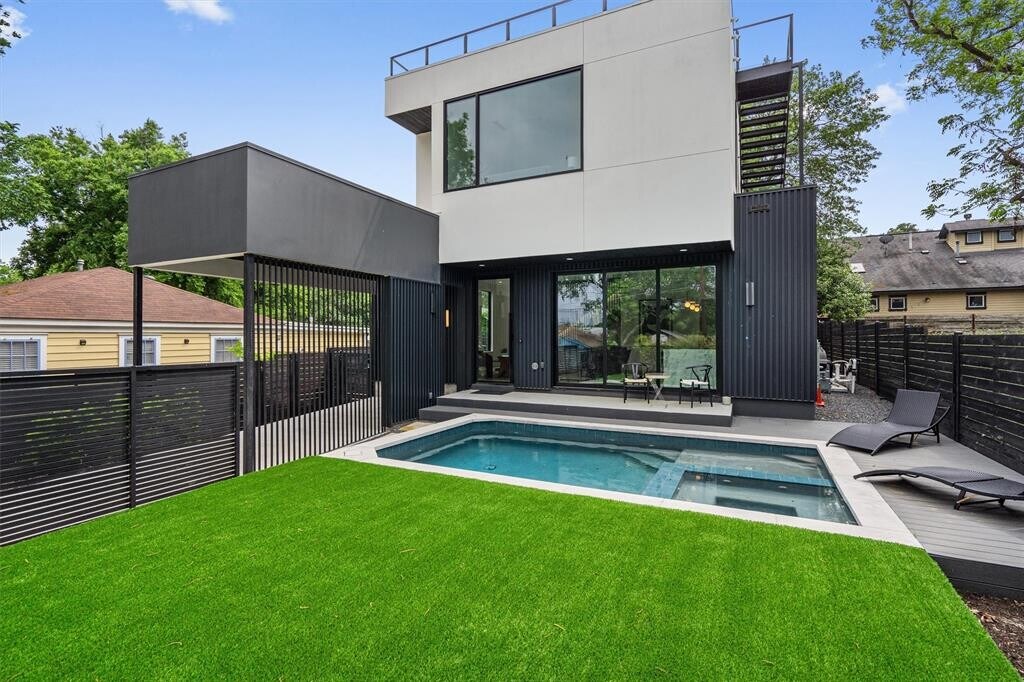 Welcome to 1707 Kerr Avenue, a realm where modern elegance reigns supreme. This FULLY FURNISHED property epitomizes opulence, boasting luxurious amenities at every corner. Upon arrival, be captivated by the striking presence of a dazzling pool and an intricately designed iron gate, meticulously crafted to ensure privacy while blending harmoniously with the home's architectural splendor and scenic surroundings. Step inside to discover a refined interior exuding serenity and harmony. A sophisticated neutral palette blends light, warm, and daring tones, creating a sense of peace and tranquility. The kitchen is a culinary masterpiece, featuring an oversized quartz island with a mesmerizing waterfall edge and sleek slab cabinets housing state-of-the-art built-in appliances. Above the gas range, a dazzling quartz hood vent adorned with delicate gold accents adds to the allure of this culinary sanctuary. 1707 Kerr Avenue offers ample built-in storage solutions throughout the home, ensuring a meticulously organized living space. Every fixture and detail has been carefully curated by discerning designers, reflecting an unparalleled level of refinement and style. Three spacious bedrooms provide a sanctuary for rest and rejuvenation, with expansive picture windows inviting natural light and collapsible sliding doors seamlessly merging indoor and outdoor living areas. The prime focus of the property is the rooftop terrace, offering panoramic views of downtown and epitomizing luxury living. Don't miss the opportunity to experience refinement and prestige at its finest! Information provided by seller & to be independently verified by the renter.