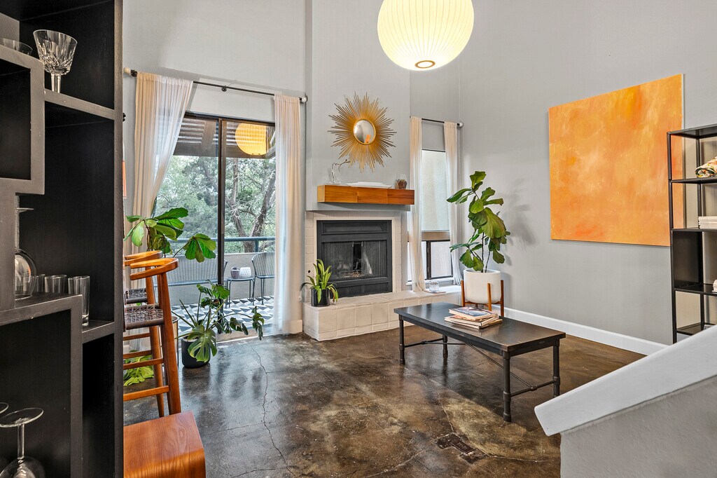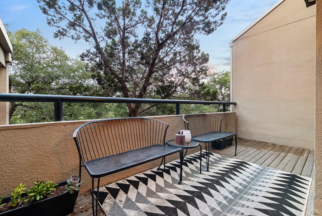 Welcome to Habidad #123, a fun open loft-style 2 bed/2 bath condo that perfectly captures the laid-back Austin vibe. Tucked away in a gated greenbelt community surrounded by towering trees, this home offers a unique blend of privacy and convenience with that lock and leave lifestyle! Located in the highly regarded Eanes ISD and the 78746 zip code, this condo is anything but ordinary. The loft-style layout, complete with moody black cabinets and a smartly designed Murphy bed, gives the space a fun, funky edge. The living area, cozy yet stylish, is just right for kicking back after a day on the nearby Barton Creek Greenbelt. The 2 decks provide plenty of outdoor lounging space. You’ll love the location—just 10 minutes from downtown Austin and 20 minutes from the airport. With easy access to major highways, Zilker Park, and shopping at Trader Joe's on Bee Cave Road, everything you need is close by, yet your home feels like a private retreat. Habidad #123 isn’t just a place to live; it’s a spot where you can truly enjoy the Austin lifestyle, blending unique style, nature, and city convenience.