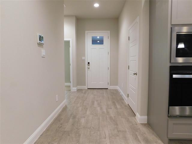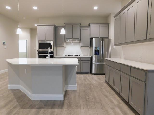 Recently built four bedroom, two full bathroom home in the Eagle Creek Community. Open kitchen and living room design. Kitchen features stainless steel appliances, a large island (with room for barstool seating) and tons of countertop space. Master ensuite bathroom features dual sinks and an oversized walk in closet. Split bedrooms set up. Property features covered front and back porches, smart home technology with security features installed, tankless gas water heater and wood look ceramic tile throughout the living areas. Good sized fenced-in backyard with built-in speakers indoors and outdoors. Refrigerator and washer & dryer included. Owner covers HOA dues. HOA includes community pool, playgrounds, and walking trail. Minutes away from the elementary school and easy access to UNT, TWU, and the Denton Square.