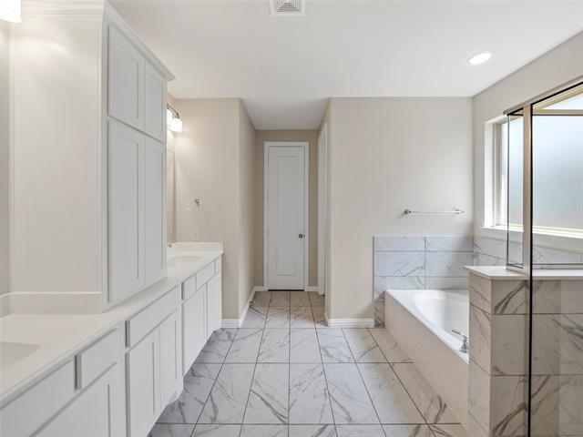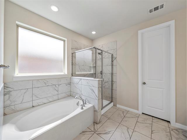 Charming and bright one story home in lovely Lilyana community, Prosper ISD. Year 2020, 2372sqft, 4 bedrooms, 3 full baths, and large media room or game room or study 15x12. The wood look tile in entry, study, living, dining, kitchen. 8 ft doors. The 12 ft high ceiling family room 19x18 with large windows bringing in natural light open to gorgeous island kitchen featuring granite countertops, gas cook top. The master bedroom 18x15 with bay window and master bathroom has dual sinks, garden tub, separate shower and cabinets. Split bedrooms and guest suit. You will enjoy the outdoors with covered patio and plenty of room to entertain. Walk to playground, tennis court and pool. Walking distance to future elementary school. Easy access to Tollway, Preston and Shopping center.