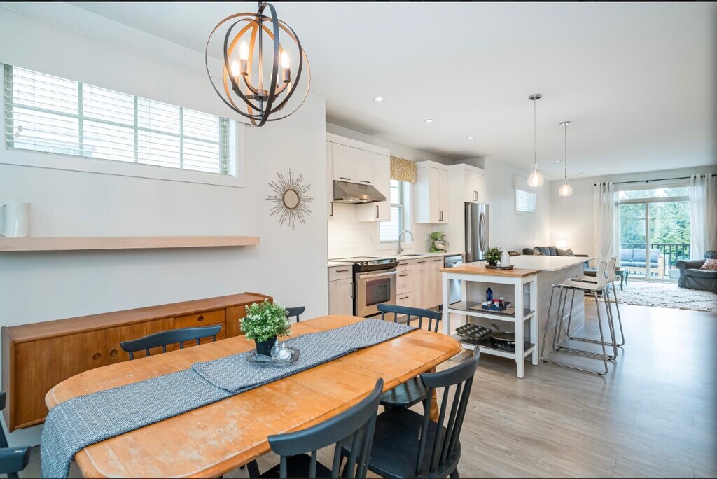 Welcome to the " GEORGE " This beautifully maintained former show home end unit offers style, comfort, and functionality throughout. Featuring three generous bedrooms on the upper level, including a spacious primary suite with a luxurious ensuite, this home is designed for modern living. The impressive kitchen showcases a large island, crisp white soft-close cabinetry, stainless steel appliances, and elegant quartz countertops—perfect for both everyday use and entertaining, the living room highlights a custom-built wall of bookcases and a cozy fireplace, with sliding doors that open onto a sizeable deck and includes a convenient powder room and ample storage space. The fully fenced backyard is thoughtfully landscaped with professional low-maintenance AstroTurf—allowing you to enjoy green space with minimal upkeep and a large covered concrete patio, creating an excellent space for year-round enjoyment and gatherings. Located on the quiet side of the complex, this home provides a sense of privacy while remaining just minutes from shopping, everyday amenities, and convenient access to the U.S. border, HWY 99, King George Blvd, and 16th Avenue. There is both a high school and elementary school within 4 minutes drive! It truly offers the perfect balance of comfort and location for someone looking for a quiet home and easy commutability! ** NOTE ; All Bedrooms have been painted white since photos were taken** Home Features; - 3 Bedrooms - 2.5 Baths - High End Built Kitchen with all Stainless Appliances - Deck off of the Main Living Space - Bright Natural Lighting - In Suite Laundry - Fully Fenced AstroTurfed Backyard - Garage - End Unit - Electric Heating - Pet Allowed with Approval Lease terms: 1 year lease and month to month thereafter. Marketed by Jayden Leonard, Property Manager Brookside Realty Ltd.