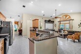 Welcome to this beautifully maintained 5-bed, 3-bath home in guard-gated Eagle Trace. Features include a triple-split floor plan, updated kitchen with granite & island, spacious primary suite with dual walk-ins and spa-like bath. Enjoy paid-off solar panels, 2022 A/C, impact windows/doors, new water heater, saltwater pool, alarm & 2012 roof. Relax in the screened pool, covered patio & fenced yard. Tax amount reflects upgrades (impact windows/doors & solar panels), which sellers will pay off at closing—taxes will be reduced. Community offers 24-hr security, tennis, basketball, pickleball & playground.