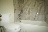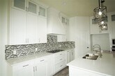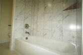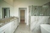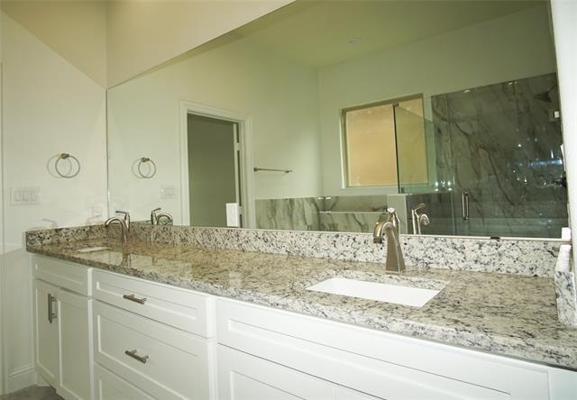 Newly built 5 beds 4 baths with features: 2 master bedroom suites, open floor plan living and kitchen spaces, quartz countertop, stainless steel appliances, custom cabinets, spacious master bathroom, double sink, designer bathtub, separate shower, and cover patio.