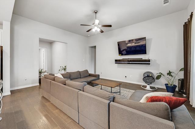Almost new, this 3 bedroom, 2 bath plus private study home offers single-level living in one of Proper's most desirable communities. Lilyana features a community pool, hike & bike paths, lake, park & playground and is located within Prosper ISD. Beautiful owner's retreat is private and offers dual vanities, large soaking tub, separate shower and an impressive walk-in closet. The chefs kitchen is sure to please with fresh white shaker cabinets, granite counters, SS appliances with gas cooktop and is open to the spacious living area. Secondary bedrooms are separated by guest bath and double-door entry to study is just off of the sun-drenched foyer. Modern finishes in up-to-date colors throughout with laminate flooring in living, kitchen, entry & hallways. This home also has a spacious covered patio and generous outdoor space for play in the fenced backyard. Kitchen refrigerator is provided and pets are allowed on case-by-case basis.