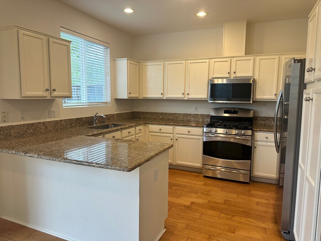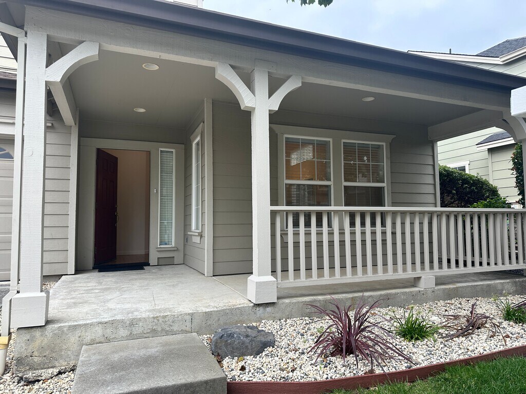 Welcome to this nicely maintained 3-bedroom plus den/office, 3-bathroom Craftsman-style home offering 1,926 sq. ft. of comfortable living space. Nestled in the desirable Parkland Farms neighborhood, this two-story residence features a quaint front porch—perfect for morning coffee and enjoying the peaceful surroundings. Step inside to an inviting open floorplan filled with natural light, high vaulted ceilings, and an abundance of windows that highlight the hardwood floors throughout. The light and bright kitchen offers an eat-in breakfast bar and opens to the dining and family room, complete with a cozy gas fireplace—ideal for relaxed evenings at home. Outside, the open backyard provides lovely hillside views and plenty of space for family gatherings and outdoor entertaining, and with landscaping service included, maintenance is a breeze. Residents will love the nearby neighborhood park and walking trails, and the home is just 10 minutes from the vibrant Healdsburg Plaza, offering dining, shopping, and wine country charm.