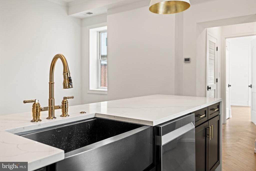 THE BEST 1 BEDROOM IN DUPONT! Welcome to Residence 42 at 1709 21st Street NW, a refined one-bedroom, one-bath condo offering nearly 700 square feet of sophisticated living in the heart of Dupont Circle. Located on the top floor of a boutique, newly redeveloped building by StonePark Development, this residence combines tailored design with the effortless charm of one of DC’s most vibrant and architecturally rich neighborhoods. The interior unfolds with striking chevron-patterned white oak floors, oversized windows, and an open-concept layout that maximizes light and flow. The chef’s kitchen makes a bold statement with a quartz waterfall island, designer lighting, and custom cabinetry. Integrated appliances and a full-height backsplash create a seamless, modern aesthetic, while the adjoining living and dining areas offer ample space for entertaining. The bedroom is a bright retreat, surrounded by windows and featuring direct access to a private balcony. A spa-inspired bath is wrapped in honed marble tile and features brushed brass fixtures, a floating vanity, and a glass-enclosed walk-in shower. Every finish was selected with intention and a focus on clean, timeless style. Tucked just around the corner from the Spanish Steps and only two blocks to Connecticut Avenue, this home places you in the center of historic Dupont Circle and the adjacent Kalorama neighborhood. Enjoy a stroll to Sunday’s farmers market, grab your morning coffee at Tatte, or explore local favorites like Kramerbooks, The Phillips Collection, Sushi Taro, and Tabard Inn—all within a few blocks. The Dupont Metro is moments away, making this the perfect blend of elegance and convenience in one of the city’s most beloved enclaves.