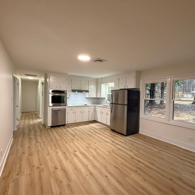 This charming brick ranch is nestled in a tranquil Pleasant Garden neighborhood. Featuring three bedrooms and two full bathrooms, the home offers an inviting eat-in kitchen equipped with stainless steel appliances and hardwood flooring throughout. Enjoy the spacious room addition next to the laundry area, a double carport, and a fenced yard—perfect for comfort and convenience.