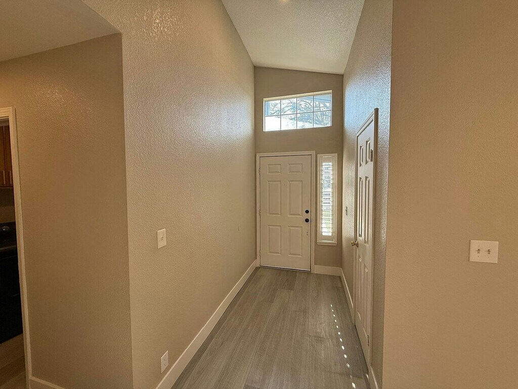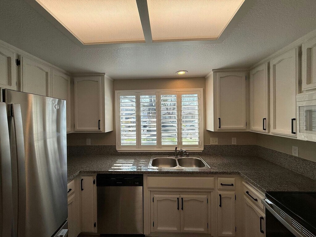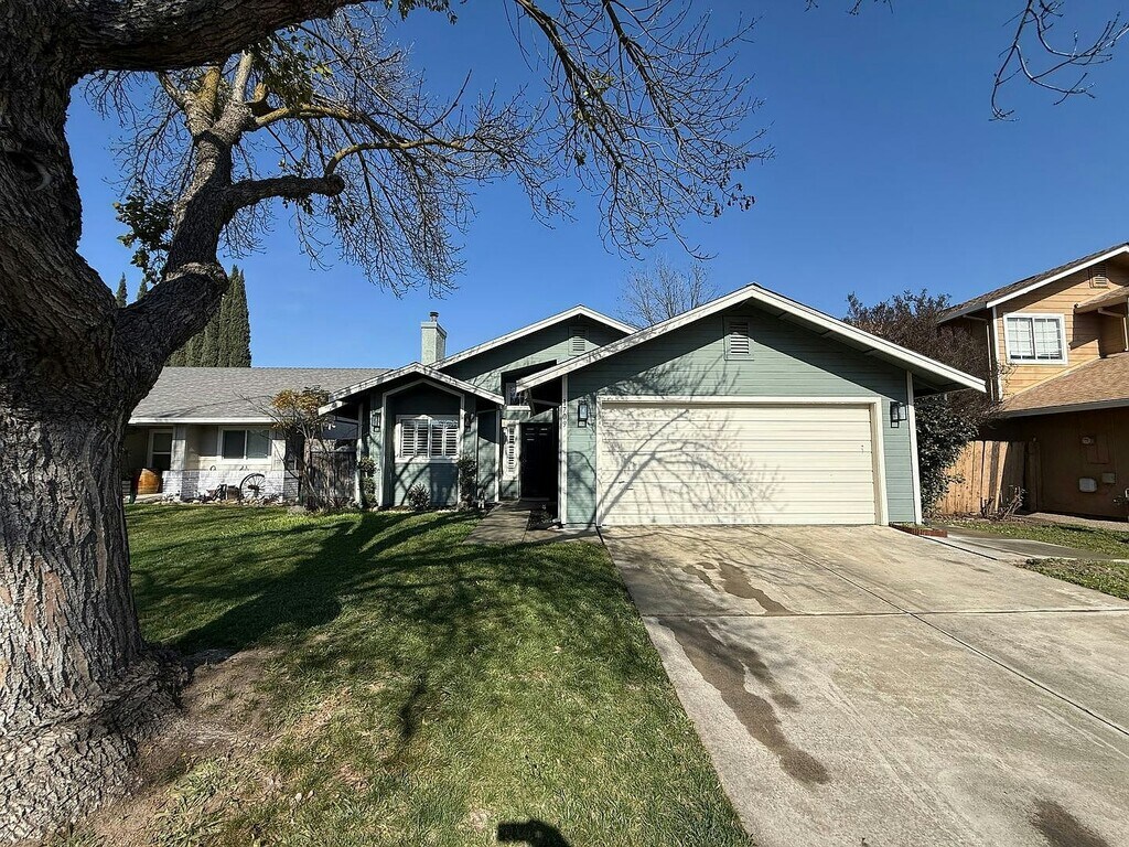 Newly updated single story 3-bedroom, 2-bathroom home with approximately 1,276 square feet located in Modesto. Be sure to check out the video tour on our website or YouTube channel. Fresh two tone paint and new Luxury Vinyl Plank flooring throughout the home. Bright living room with vaulted ceilings and a cozy fireplace. Dining space with modern light fixture. The updated kitchen features shaker cabinets, granite countertops, and both bar seating. Appliances include electric range, built in microwave hood, dishwasher and fridge. Inside laundry with washer and dryer included (without warranty). The primary suite includes a double vanity, soaking tub, separate shower and walk in closet. Central heating and air conditioning. Attached two car garage with automatic opener. Conveniently located near MJC West Campus with easy access to HWY 99 and HWY 132. Landscaped front and backyards with sprinkler system and patio. Tenant is responsible for all utilities and maintaining yards.