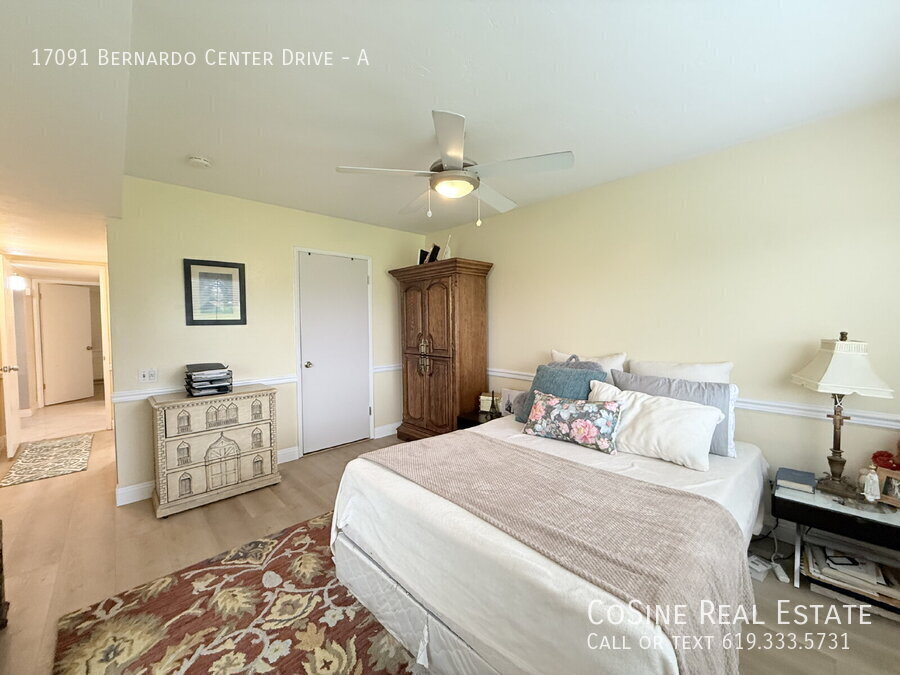 Settle into this well-maintained, ground-floor, corner unit situated right on the golf course with beautiful views. This 2-bedroom, 2-bath rental offers easy living and a prime location. Bright and Spacious: Enjoy a dedicated dining area and a great kitchen featuring lots of cabinet and countertop space. The bedrooms are also generously sized. Indoor/Outdoor Flow: A large sliding door opens to a covered patio where you can relax and take in the fantastic views overlooking the course. Top Location: You're near everything—restaurants, shopping, and banks—and just minutes from I-15 and 4S Ranch. The beautiful RB Inn is only a mile away! Storage & Parking: The unit includes one nearby carport space and a private golf cart garage/storage unit—perfect for your cart, bicycles, or extra belongings. The rental comes with full Rancho Bernardo Swim and Tennis Club privileges at no extra cost, plus basic cable TV and basic internet services. The owner covers trash, water, and HOA fees. The tenant is responsible for electricity and any internet services beyond the basic plan. LEASE DETAILS - Available NOW - Rent: $2.995 - Deposit: $2,995 - Water & Trash included - Basic cable with over 150 channels included! - Military Discounts (20% off the security deposit) Questions? Call/Text Professionally Managed by CoSine Real Estate DRE #01976619