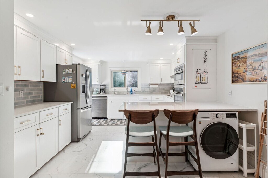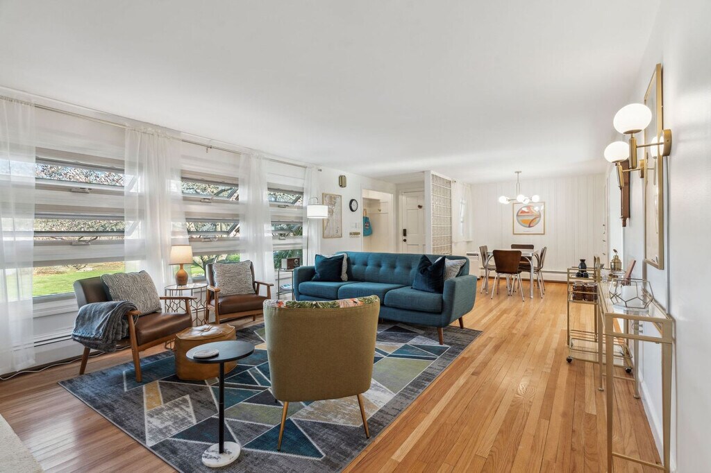 Welcome to your Rye beach getaway! Feel at home in this 3-bedroom home that's just a 2-minute drive (or 17-minute walk) to Wallis Sands Beach and minutes from downtown Portsmouth. This single-level home is perfect for last-minute escapes. This home features a fully renovated kitchen equipped with all major appliances, a wall oven and microwave, a dishwasher, and a reverse osmosis water filter. The kitchen also includes a peninsula with seating for two and an extra washer under the peninsula. The living room offers a comfy couch and three chairs, a smart TV, books, and an A/C unit. The dining room features a retro dining table with seating for six. Enjoy the convenience of an in-unit washer and dryer. Bikes are provided, including helmets and air pumps. Parking is available for four cars, with two able to park on the side of the driveway. The Town of Rye, New Hampshire, is located on the Atlantic Coast, an hour's drive from Boston, Massachusetts; Portland, Maine; or the foothills of New Hampshire's White Mountains. Rye is known for its beautiful unique beaches, tasty seafood, and coastal fun, ideally located between Hampton to the south and Portsmouth to the north. A car is needed to get to the home, but it is an easy bike ride or walk to the beach! Please be mindful of the neighbors during your stay and observe quiet hours between 9:00 p.m. and 9:00 a.m. Minut is a smart home device that measures volume levels throughout the property and allows the host to respond to noise nuisances without disrupting your stay. Minut is 100% privacy compliant and is required on this property. There is also a Ring Doorbell Camera on the exterior of the property facing the outside of the entrance. You must be at least 25 years old to rent. Bedroom #3 includes a work-from-home desk. Registration Number: 105869 [SI]