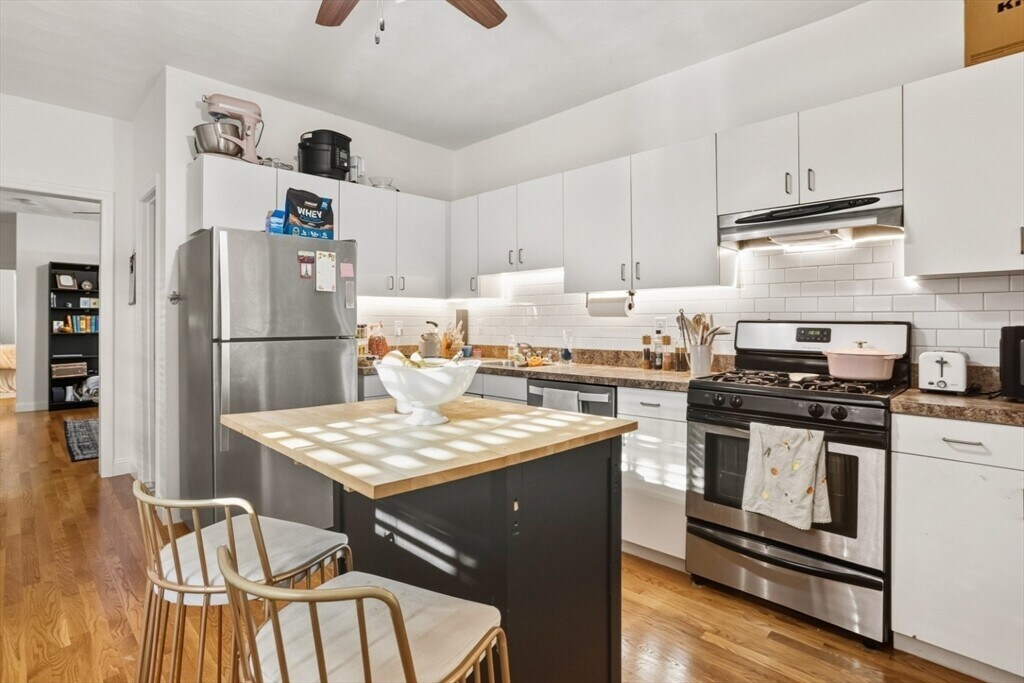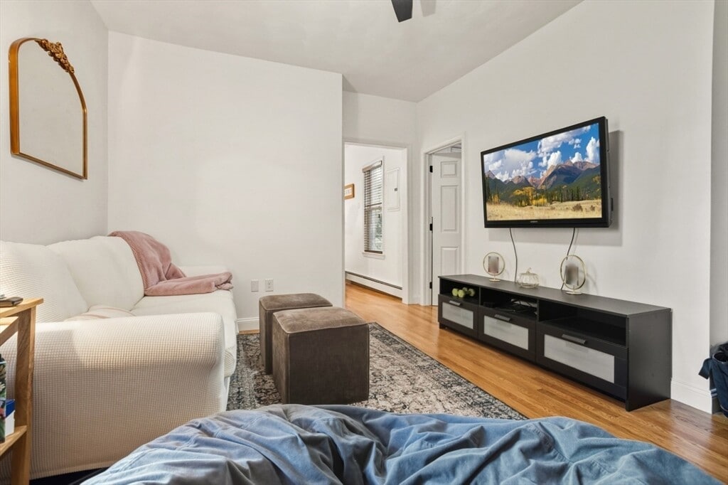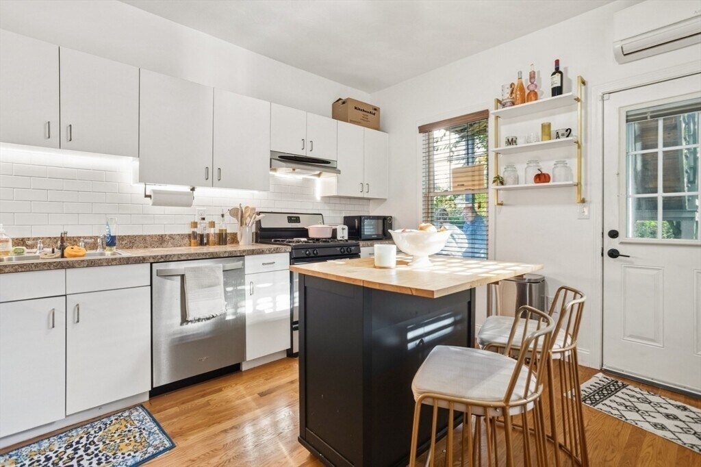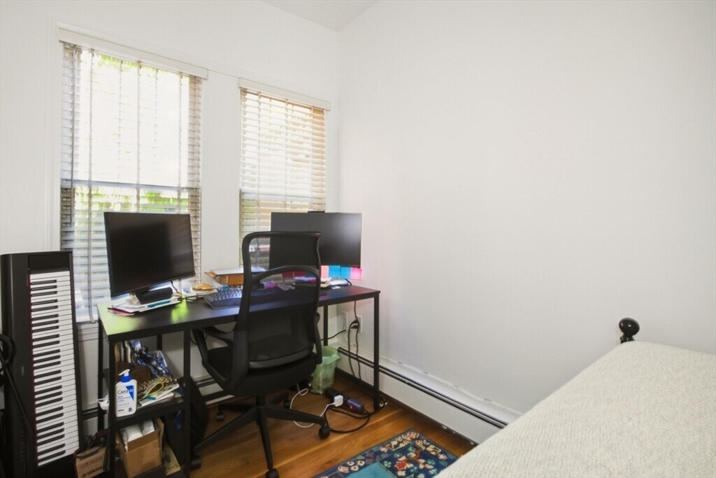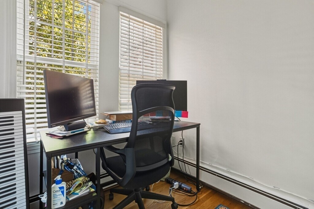 The best of both worlds: the outdoors and city living. Located in East Boston's Eagle Hill,this first floor unit welcomes natural light,a private porch and a fenced-in garden area. Imagine dining outside on a perfect summer evening in the garden area. Enjoy the comfort of a spacious living room,eat-in kitchen with stainless steel appliances,nicely sized primary bedroom with the added flexibility of a bonus room for a guest,home office or fitness equipment. The condo boasts an in-unit washer and dryer for ease of lifestyle. Mini-splits provide air conditioning and heat along with the existing heat that is a natural gas powered baseboard heat. Designated storage space is in the basement. Explore the nearby parks,restaurants,shops and transportation options: the T's Blue line (1/2 mile away),a water taxi to the Seaport,Uber,and of course nearby Logan International Airport to name a few. This unit offers flexibility,city living,and outdoor space. What a lovely combination! MLS# 73449033