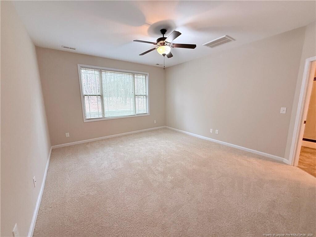 Spacious 5-bedroom, 3-bath two-story home located in the desirable Carolina Lakes community. This home features a primary bedroom on the first floor with high ceilings, creating a bright and comfortable retreat. The open and functional layout offers ample living space, a well-equipped kitchen, and generously sized secondary bedrooms. Additional highlights include a 3-car garage and plenty of room for storage. Enjoy access to Carolina Lakes amenities including a man-made beach, boat docks, clubhouse, and golf course. Conveniently located near shopping, dining, and major roadways. Tenant Benefits Package required at $49.95 per month.