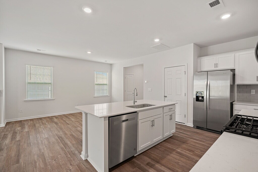 New Home within new community just 1.5 miles from downtown Troutman great for a family. Guest Bed/Bath on Main Level! Wide foyer leads to an open kitchen & family room. Kitchen highlights a center island w/ Quartz Countertops, Shaker cabinets, stainless gas range appliance pkg. Large corner pantry space. Gas log fireplace & decorative mantle adorn the family room. Spacious primary bath features a 5 ft glass door shower w/separate garden tub, double vanity, separate water closet and large WIC. Convenient upstairs laundry room, 3 additional beds, hall bath w/ double sinks and loft completes the 2nd floor. Beautiful upgrades such as 2" faux wood blinds, LVP flooring on first floor (minus bedroom) and in all baths, wrought iron spindles at staircase and sleek LED lighting. Smart Home package and warranty included. Future pool, playground, walking trails! Troutman Schools.