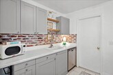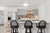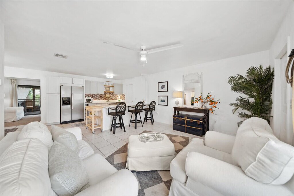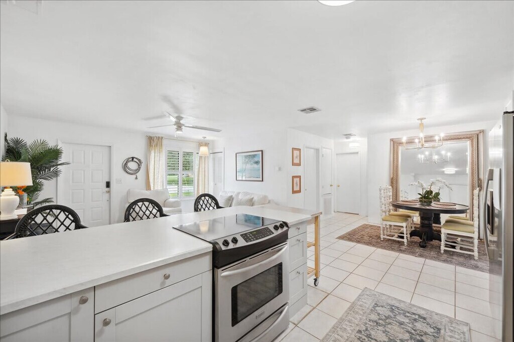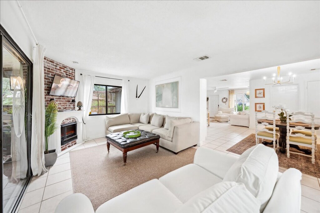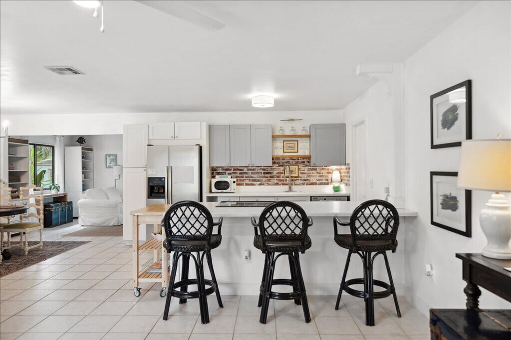 Discover your home away from home in this charming Palm Bay bungalow, ideally located near the ocean. This single-level home with step-free access offers a comfortable stay. Feel at home in this convenient base to explore the best of Florida. Step inside and discover a space designed for comfort and relaxation. The home features two well-appointed bedrooms and a spacious living area, providing ample room for families or groups. The heart of the home is the fully equipped kitchen, complete with a dishwasher, refrigerator, stove, oven, microwave, and all the essential cookware and dishes, making meal preparation a breeze. Enjoy your meals at the dining table, perfect for family gatherings. The living area provides a cozy space for relaxation, with comfortable seating and a TV for entertainment. Step outside onto the private patio or balcony, where you can unwind and enjoy the Florida sunshine. Additional amenities include air conditioning, heating, and Wi-Fi. For your convenience, the bungalow also includes a washer and dryer, allowing you to keep your belongings fresh throughout your stay. The property is also equipped with essential safety features such as a smoke detector and a carbon monoxide detector. Free parking is available on the premises. Explore the vibrant neighborhood surrounding the bungalow! Located at 171 Salmon Dr NE, you're ideally positioned to discover local gems. Enjoy a short drive to the beautiful beaches. Within a few miles, you'll find a variety of dining options, from casual eateries to family-friendly restaurants. For shopping, browse the local boutiques and shops nearby. The neighborhood itself offers a relaxed, residential atmosphere, ideal for a peaceful getaway, while still providing easy access to the best of Palm Bay. Quiet time is between 10 p.m. and 8 a.m. [SI]
