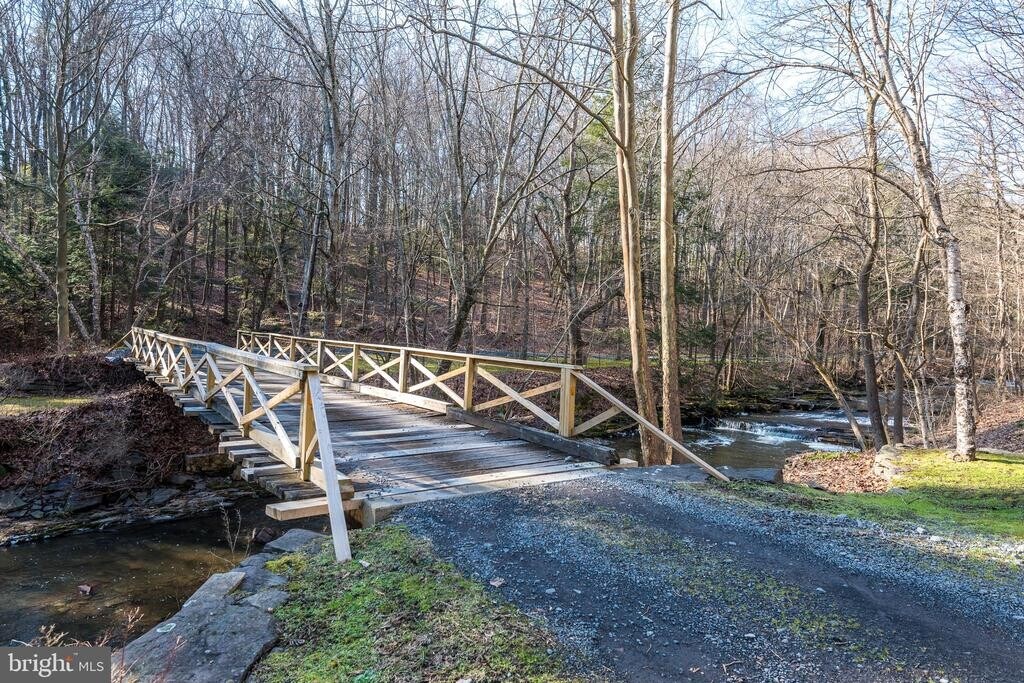 Located on a 92-acre private estate is this 2-bedroom home with an open floor plan, attached garage, full walk-out basement, and screened-in porch which overlooks a 2-acre pond. The home has one floor living with the master bedroom, full bath, laundry, kitchen and family room with vaulted ceiling and wood burning stove on the first level. Off of the family room is a screened-in porch that overlooks this extremely private and park-like setting. There is a second bedroom on the upper level and a full basement for all of your storage needs. Entering the property is magical as you traverse through the woods, cross the bridge which takes you over Rapp Creek and continue up the driveway to your home. The only sounds you will hear is what nature provides. The home has propane-forced hot air heat, wood stove, and central AC. Tenant is responsible for heat and electric. Landlord provides sewer, water, lawn maintenance, snow removal and trash.