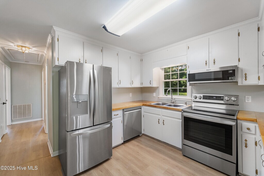 Welcome to 171 Trott Road, a charming 3-bedroom, 1-bath home situated on over an acre of land in Richlands, NC.Inside, you'll love the LVP flooring throughout the home--easy to clean and stylishly modern. The spacious living area flows into the kitchen, where you'll find ample cabinet storage, beautiful butcher block counters, and sleek stainless steel appliances. Whether you're cooking for yourself or entertaining, this kitchen is designed to impress.The bedrooms are generously sized, offering comfort and flexibility for guests or even a home office.Step outside and enjoy the true highlight of this property: the huge backyard. With plenty of room for outdoor activities, gardening, or simply soaking up the sunshine, you'll have the perfect combination of space and privacy. The covered carport adds convenience, while the attached storage closet provides extra room for tools, equipment, or seasonal items.Located just minutes from the conveniences of Richlands and a short drive to Jacksonville, this home offers peaceful country living with modern comforts. Schedule your showing today!