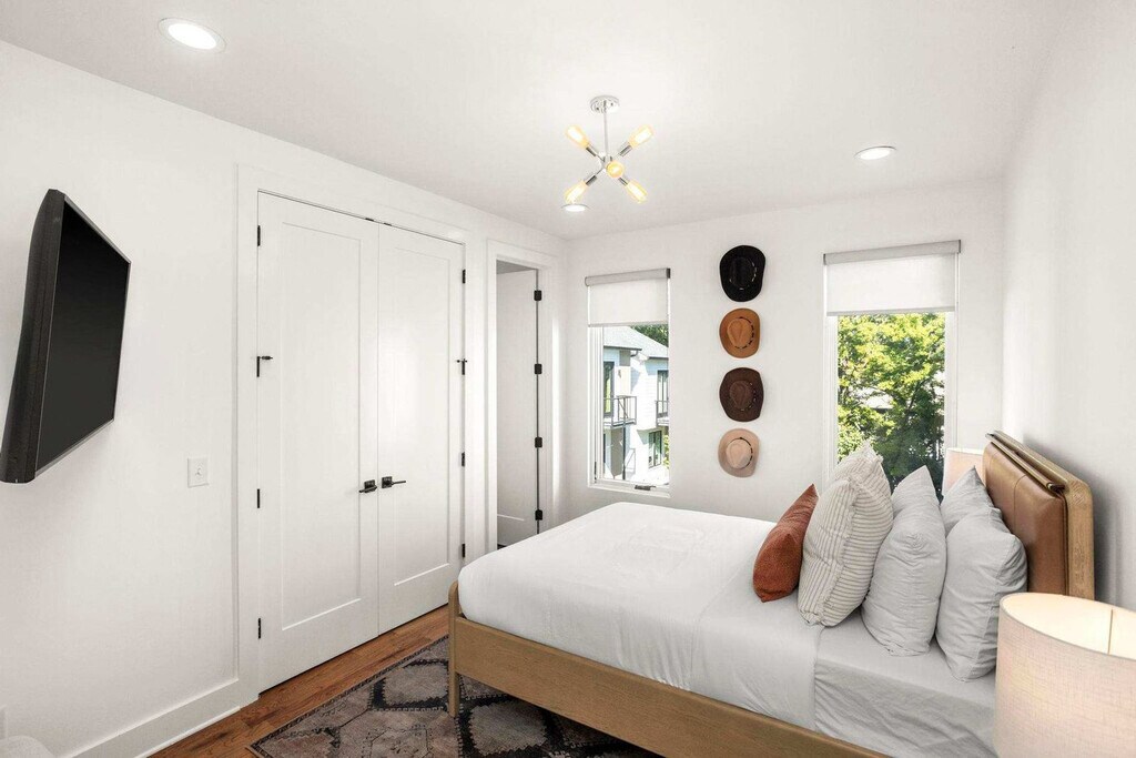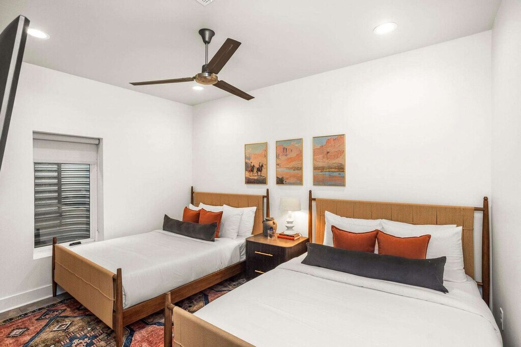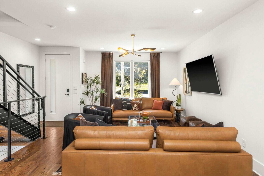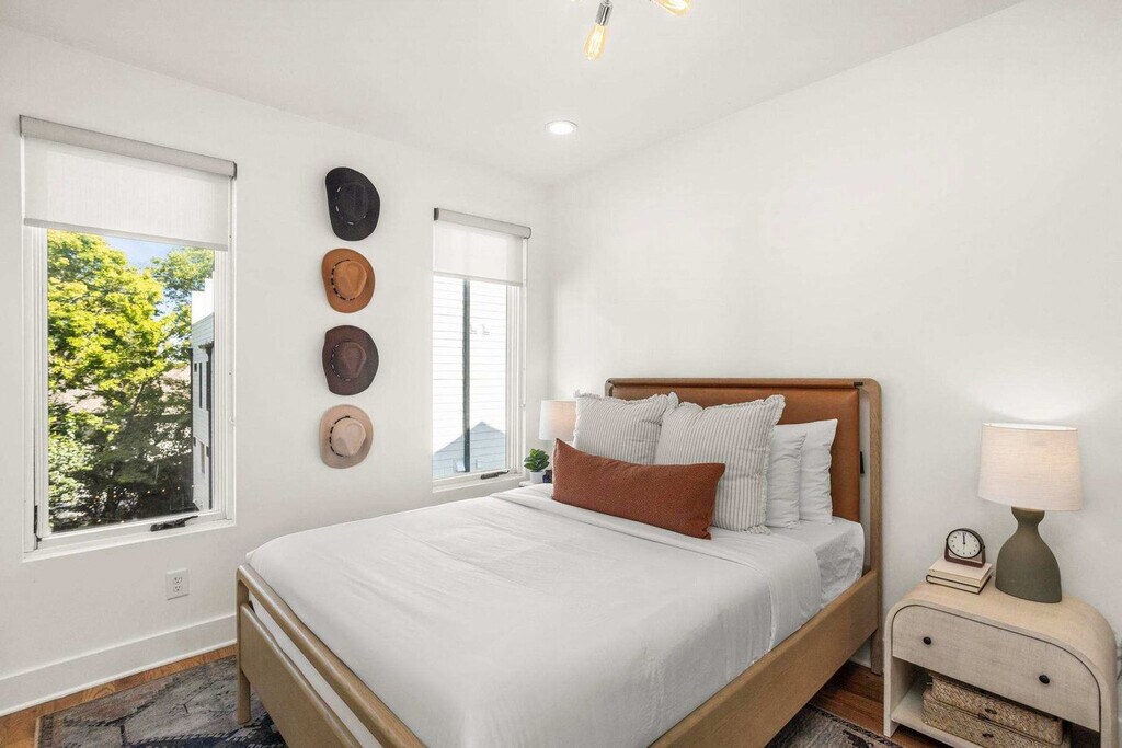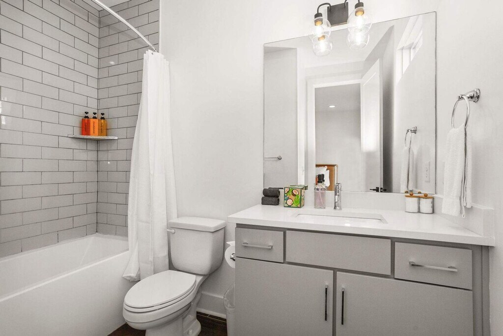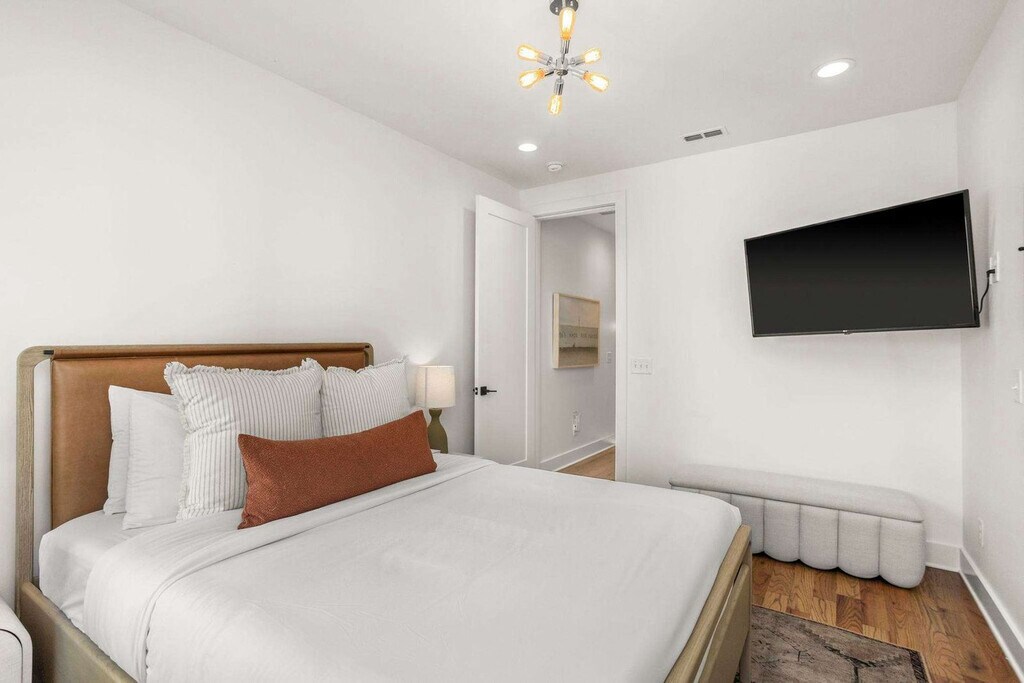 Experience Nashville in style at this stunning 4-bedroom house in the heart of 8th Ave South. This luxurious home, perfect for groups of up to 12, boasts a spacious open-concept layout and premium amenities. Located just minutes from Broadway and close to local attractions like Zanies Comedy Club and charming cafes, it offers the perfect blend of comfort and convenience for your Nashville adventure. The house features a 2-car garage and a gourmet fully stocked kitchen. On the first level, you'll find Bedroom 1 with two queen beds, an adjacent full bathroom, and a smart TV. The second level hosts the kitchen, living room, dining area, and a half bathroom. The third level includes Bedroom 2 with a queen bed and ensuite full bathroom, and Bedroom 3 with a king-size bed, a twin hotel-style rollaway bed, and an ensuite full bathroom. The fourth level offers Bedroom 4 with two queen beds, a twin hotel-style rollaway bed, an adjacent full bathroom, a lounge area with a TV, and a balcony. Early check-in or late check-out can be arranged at half the price if the night prior or after your stay is available. Situated in a prime location just minutes from Broadway and all major attractions, this home is on 8th Avenue South and adjacent to the Waverly Neighborhood. You can walk to Hattie B's, Zanies, Baked on 8th, and other local restaurants, cafes, and shops. It's a 9-minute drive to Broadway and Bridgestone Arena, 7 minutes to The Gulch, 5 minutes to Geodis Park, 8 minutes to Nissan Stadium, 4 minutes to 12 South, 6 minutes to Vanderbilt, and 5 minutes to Belmont. Ubers and Lyfts are readily available for easy transportation. Quiet hours are in place to respect our neighbors by keeping outdoor noise levels down. Smoking is not allowed inside or within 25 feet of the property, and a $500 fee will apply if smoke of any kind is detected in the home. Decorations such as glitter or confetti are not allowed, and all decorations must be removed before departure. Early check-in or late check-outs must be pre-arranged, and any non pre-arranged late check-outs will result in withholding of deposit. A laptop computer is not included. We will not be on property, but are available 24/7. Registration Number: