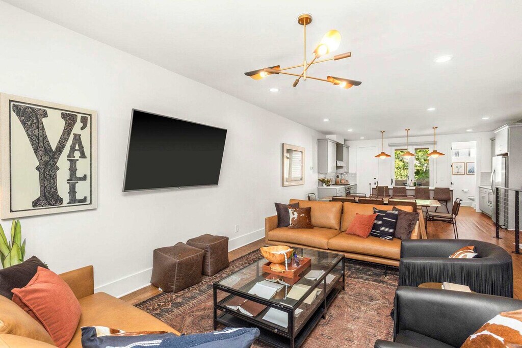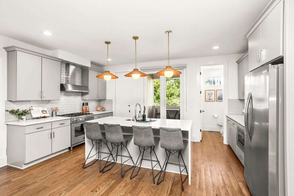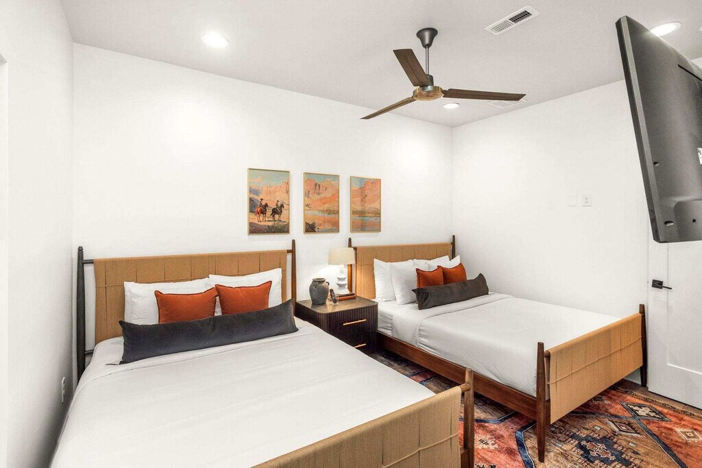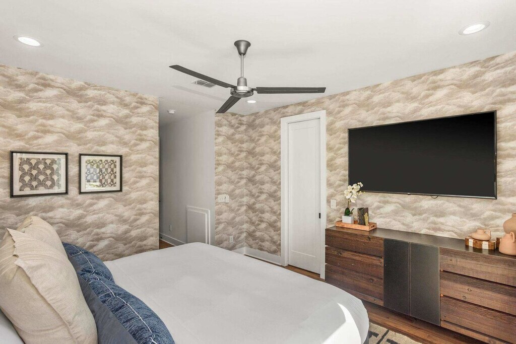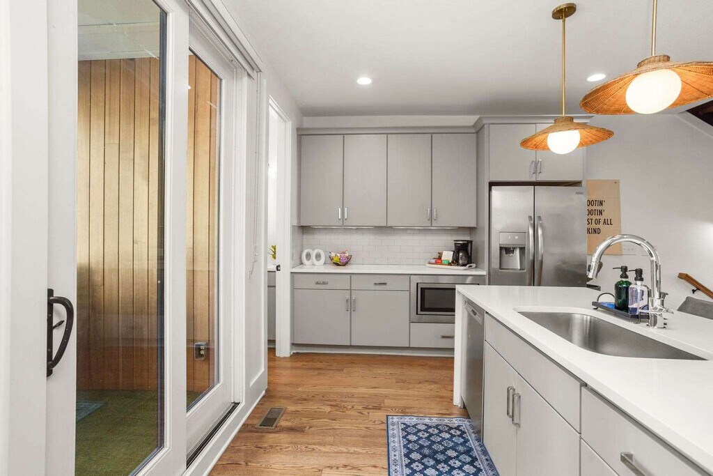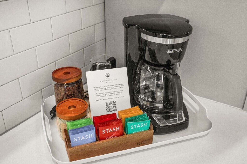 Experience Nashville in style at this stunning 4-bedroom house in the heart of 8th Ave South. This luxurious home, perfect for groups of up to 12, boasts a spacious open-concept layout and premium amenities. Located just minutes from Broadway and close to local attractions like Zanies Comedy Club and charming cafes, it offers the perfect blend of comfort and convenience for your Nashville adventure. The house features a 2-car garage and a gourmet fully stocked kitchen. On the first level, you'll find Bedroom 1 with two queen beds, an adjacent full bathroom, and a smart TV. The second level hosts the kitchen, living room, dining area, and a half bathroom. The third level includes Bedroom 2 with a queen bed and ensuite full bathroom, and Bedroom 3 with a king-size bed, a twin hotel-style rollaway bed, and an ensuite full bathroom. The fourth level offers Bedroom 4 with two queen beds, a twin hotel-style rollaway bed, an adjacent full bathroom, a lounge area with a TV, and a balcony. Early check-in or late check-out can be arranged at half the price if the night prior or after your stay is available. Situated in a prime location just minutes from Broadway and all major attractions, this home is on 8th Avenue South and adjacent to the Waverly Neighborhood. You can walk to Hattie B's, Zanies, Baked on 8th, and other local restaurants, cafes, and shops. It's a 9-minute drive to Broadway and Bridgestone Arena, 7 minutes to The Gulch, 5 minutes to Geodis Park, 8 minutes to Nissan Stadium, 4 minutes to 12 South, 6 minutes to Vanderbilt, and 5 minutes to Belmont. Ubers and Lyfts are readily available for easy transportation. Quiet hours are in place to respect our neighbors by keeping outdoor noise levels down. Smoking is not allowed inside or within 25 feet of the property, and a $500 fee will apply if smoke of any kind is detected in the home. Decorations such as glitter or confetti are not allowed, and all decorations must be removed before departure. Early check-in or late check-outs must be pre-arranged, and any non pre-arranged late check-outs will result in withholding of deposit. A laptop computer is not included. We will not be on property, but are available 24/7. Registration Number: