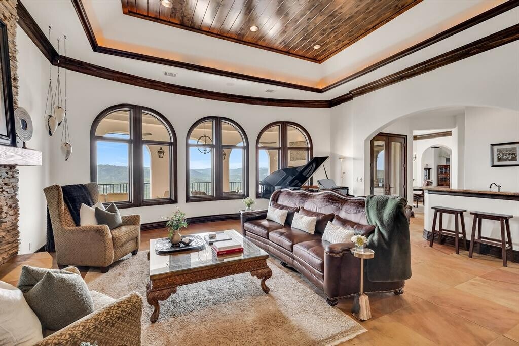 A Private Westlake Hills Sanctuary in the Sky Bathed in golden light and perched high above the hills of Westlake, Sky House lives up to its name. From nearly every room, panoramic views stretch across the treetops and rolling hills, offering a rare sense of total escape—just minutes from downtown Austin and within the acclaimed Eanes ISD. Crafted with enduring materials and timeless vision, the home reveals itself in layers of warm detail—from the barrel-vaulted stone entryway to hand-laid limestone, natural wood accents, and three inviting fireplaces. Expansive living spaces flow effortlessly to multiple covered patios, each framing the landscape like a living canvas. The main level lives like a single-story home, centered on ease and elegance. The primary suite is both functional and indulgent, with two walk-in closets, a fireplace, private gym space, and direct access to a secluded hot tub courtyard and a peaceful balcony retreat. A second en suite bedroom on this level offers additional flexibility for guests or extended living. Downstairs, the home expands to meet every need—with three more bedrooms, a spacious game room, a creative or study nook, and a second outdoor patio that mirrors the stunning views above. Whether for family, entertaining, or quiet reflection, the spaces are designed to adapt and inspire. Outside, the resort-style pool feels suspended in the trees, featuring a cascading waterfall, hidden grotto, and elevated lounge deck. Lush landscaping and custom stonework anchor the property in nature, while the oversized lot provides space to imagine—whether it’s a future guest house, studio, or garden retreat. Privately set in the hills of Westlake, Sky House is a rare architectural sanctuary where warmth, privacy, and natural beauty converge. Lease Options: $18,500, fully furnished - Minimum 3 month term at $19,500 per month plus utilities - 6 month term at $18,500 per month plus utilities.