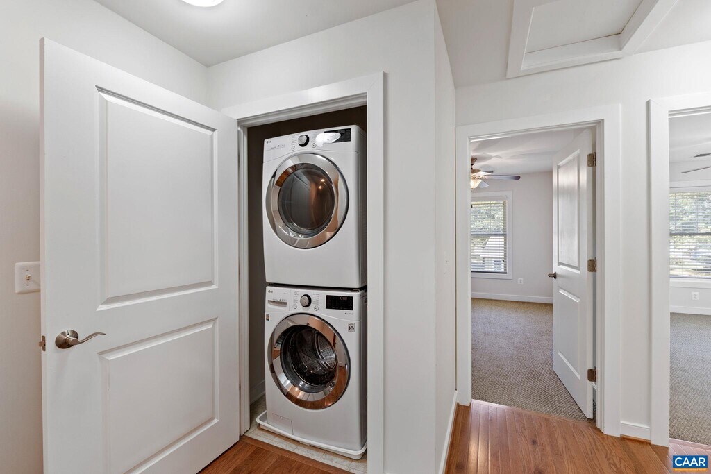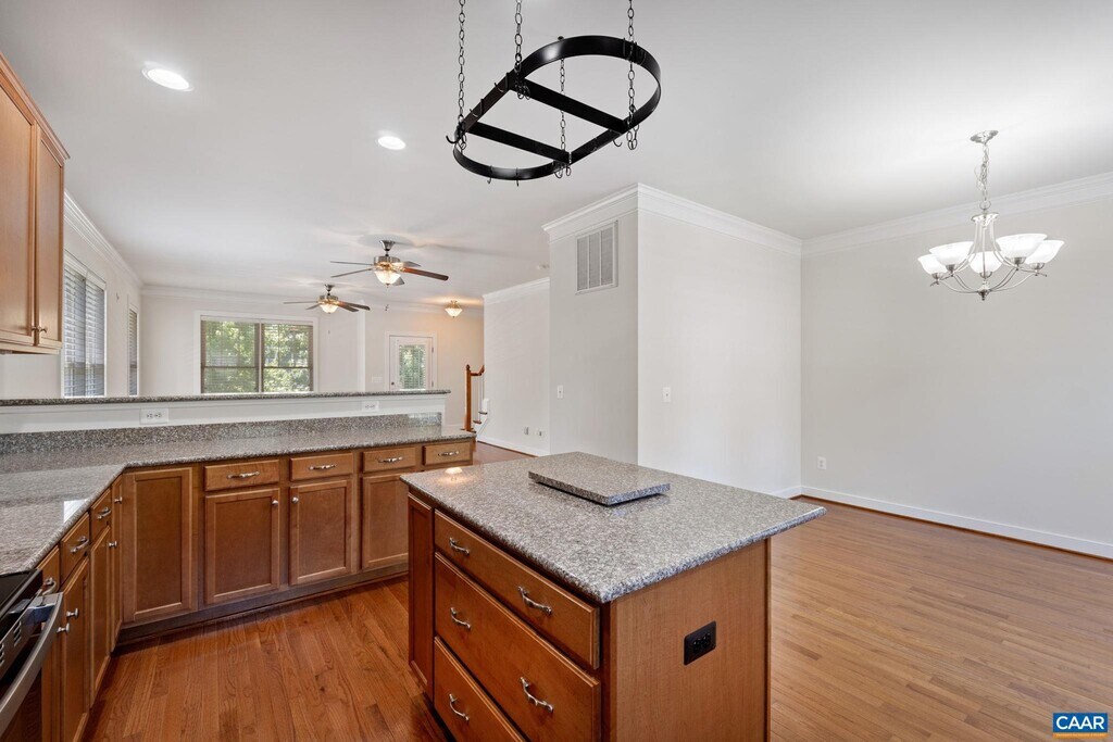Welcome to this stunning upstairs rental unit in the highly desirable Wickham Pond community. This spacious & light-filled end unit offers a thoughtful layout perfect for modern living. As you step into the open living area, you’ll be greeted by an inviting atmosphere with abundant natural light streaming through large windows. The kitchen boasts a central island, cherry cabinets, granite countertops, & plenty of storage space. The seamless flow from the kitchen to the living & dining areas creates an ideal setup for gatherings or quiet evenings at home. A half bath on this level also adds to the convenience. Enjoy the luxury of outdoor living with both front & back decks, perfect for sipping morning coffee, dining al fresco, or relaxing in the fresh air. Upstairs you'll find 2 spacious bedrooms, stacking laundry closet, & a primary with an en-suite bathroom & two closets. There’s room for everyone to unwind comfortably! Additionally, this unit includes a convenient 1-car garage with built-in work bench. Set in Wickham Pond at the edge of Crozet, this rental offers easy access to nearby amenities, trails, & a short commute to Charlottesville. 12 Month lease minimum. NO PETS.