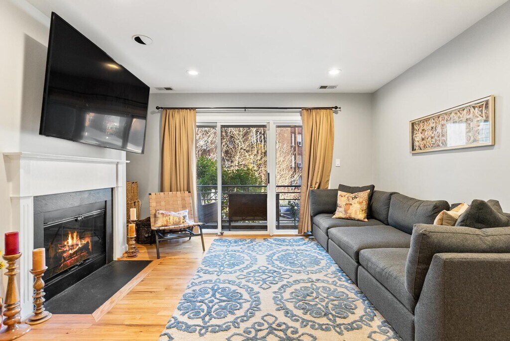 Experience the perfect blend of modern comfort and unbeatable location in this beautifully updated two-bedroom, two-bathroom condo spread across two spacious levels. Thoughtfully designed for both everyday living and effortless entertaining, the home offers three distinct outdoor areas, providing rare flexibility for relaxing, gardening, or hosting guests. Step into an inviting living and dining space featuring warm hardwood floors, elegant built-ins, and a cozy wood-burning fireplace that sets the tone for the entire home. The renovated kitchen impresses with sleek quartz counters, premium stainless-steel appliances, contemporary cabinetry, and an oversized pantry offering exceptional storage. Convenience is at the forefront, with a washer/dryer on the main level and multiple closets and storage nooks throughout. The generously sized main-level bedroom is filled with natural light and double closets, while the second bedroom also enjoys great light, a large custom closet, and room to unwind. Both bathrooms have been beautifully updated with modern fixtures, polished finishes, and thoughtful details—one featuring a walk-in shower with dual medicine cabinets, and the other offering a relaxing soaking tub. Additional upgrades include enhanced lighting with LED fixtures and dimmer controls, an updated electrical panel, and refined interior touches throughout. Outdoor living shines with a private rear patio, a charming front balcony perfect for morning coffee, and access to a serene community patio complete with seating, grilling space, and landscaped greenery. This boutique, pet-friendly building sits on a quiet street just steps from the energy of Adams Morgan, surrounded by top dining, shops, parks, and the National Zoo. Columbia Heights and Woodley Park–Adams Morgan Metro stations are both within a 15-minute walk. A dedicated garage parking space and additional storage with recently installed industrial shelving convey with the property, completing this exceptional offering. Schedule a showing today and make this charming apartment your next home!