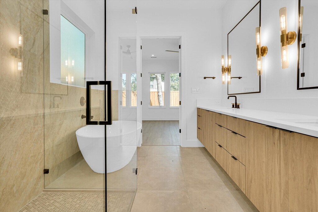 Brand New Construction! Built by Conrad Homes, this stunning two-story single-family home sits right in the heart of Downtown Dallas. Enjoy an easy commute across the Trinity River Bridge and walk just a few blocks to the restaurants, bars, and retail at ArtPark. Step inside to find high-end finishes throughout. The open-concept first floor features a modern kitchen with quartz countertops, a large island, and plenty of cabinet space, overlooking the spacious living area with a fireplace. The downstairs also includes a full-size laundry room, a two-car garage, and the primary suite with an ensuite boasting dual vanities, walk-in closet, a guest bedroom or flex office space, and garden tub in the oversized shower. Upstairs you'll find two additional bedrooms including one with ensuite bath, an oversized second living area, and a full bath with dual vanities. Tenant is responsible for utilities and yard care! No smoking inside. 12 month lease
