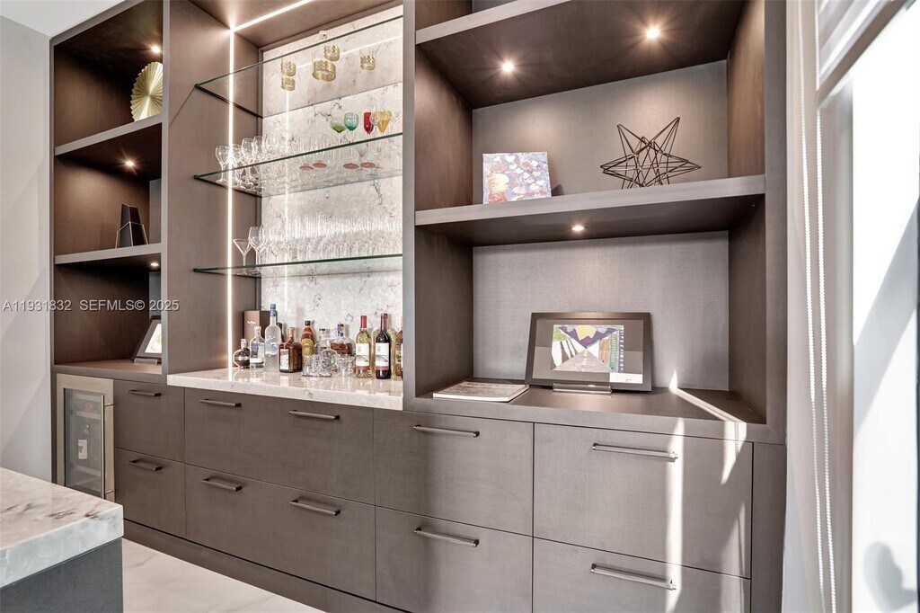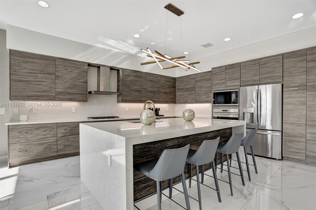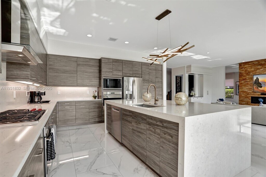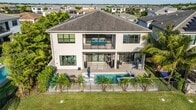 Welcome to this stunning home in the coveted Lotus community. This is the largest floor plan in the community & boasts custom designer touches throughout. There are 5 bedrooms, 7 bathrooms & media room, den, loft, & game room. With a 4-car garage, there's no shortage of storage of space for your vehicles. The heart of this home is a true chef's kitchen, featuring high-end finishes, top-of-the-line appliances, & ample cabinet space. This home is the perfect place to host friends & family with a fully custom bar & dining room adorned with a serene waterfall feature. The gorgeous outdoor space is laid out to allow for enjoyment of all that Florida has to offer- with a custom pool and built-in spa, summer kitchen, & long lake view with western views to watch sunsets.