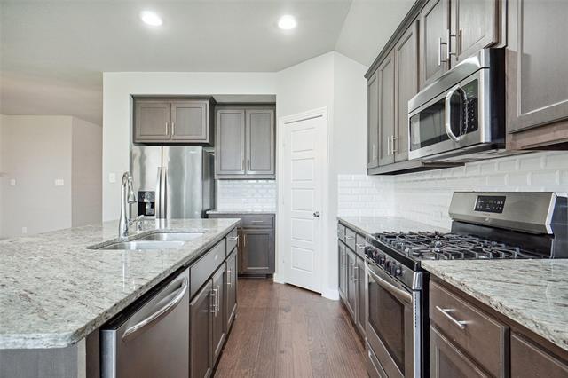 Welcome to 1712 Alton Way, a beautifully maintained 4-bedroom, 3-bathroom home nestled in the heart of the highly sought-after Arrow Brooke community in Aubrey, Texas. Built in 2017 and offering 2,126 square feet of thoughtfully designed living space, this home is the perfect blend of comfort, functionality, and modern style. From the moment you step inside, you'll appreciate the warmth of the engineered wood floors, arched entryways, and abundant natural light. The open-concept layout features a spacious living room anchored by a stone fireplace, seamlessly connected to a stylish kitchen with granite countertops, stainless steel appliances, subway tile backsplash, and an oversized island with bar seating—perfect for family gatherings or casual meals. This home offers a flexible floor plan that includes two dining areas—ideal for both formal occasions and everyday use. The private primary suite boasts a luxurious en-suite bath with a soaking tub, separate shower, and dual vanities. Three additional bedrooms and two more full bathrooms provide plenty of space for guests, children, or a dedicated home office. Step outside to a covered patio and fenced backyard ready for outdoor play or entertaining. Beyond the property, Arrow Brooke delivers resort-style amenities designed for active families. Enjoy two community pools, three serene ponds, a sports complex, three playgrounds, and a dedicated outdoor fitness area. Whether it’s a morning jog around the trails or an afternoon at the park, this neighborhood promotes a connected and energetic lifestyle. Zoned to Denton ISD and conveniently located near Hwy 380, this home offers easy access to nearby shopping, dining, and entertainment in Frisco, Little Elm, and Denton. With its spacious layout, top-notch community features, and move-in-ready condition, 1712 Alton Way is an exceptional opportunity to plant roots in one of North Texas’s fastest-growing areas.