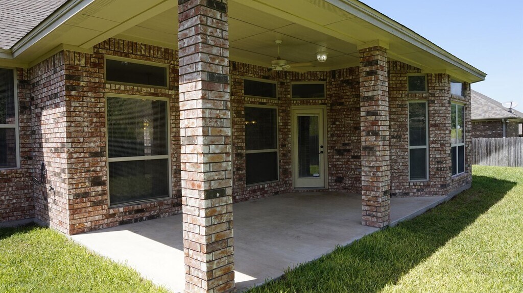 This home in the Warriors Ridge subdivision offers 2,473 square feet of well-designed living space and includes a 2-car garage with remotes. The home features two dining areas, including an eat-in kitchen and a formal dining room, making it ideal for both everyday living and entertaining. The living room is highlighted by a double-sided fireplace with decorative cutout windows, creating a striking focal point. The kitchen offers a large dining area with bay windows and is equipped with stainless steel appliances, granite countertops, a kitchen island with side outlets, pantry, separate oven, glass-top stove, built-in microwave, breakfast bar, double sink with disposal, and a side-by-side refrigerator with ice and water dispenser on the door. The primary bathroom features a separate shower and whirlpool tub, double vanity, and block glass windows. High ceilings, carpet and ceramic tile flooring, and seven ceiling fans throughout the home enhance comfort, including two fans on the covered patio. Additional features include a full-size laundry room, alarm and sprinkler systems, spacious closets, an inlaid tile foyer design, recessed lighting in the living room and kitchen, a wood privacy-fenced yard, covered porch, extended driveway, and no rear neighbors. Appointments aren’t required to tour. Contact us or stop by our Killeen office to learn more and see this home in person once it becomes available! We are located at 1020 W Jasper Dr, Killeen, TX 76542. New photos and 360° virtual tour coming soon!