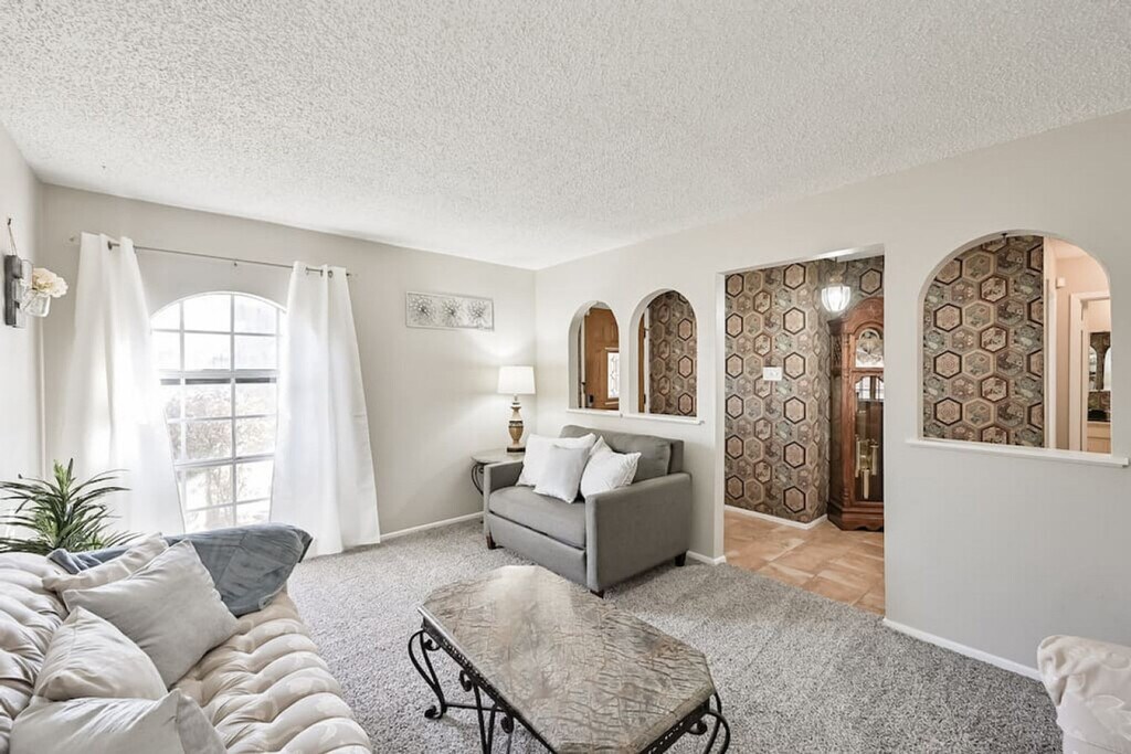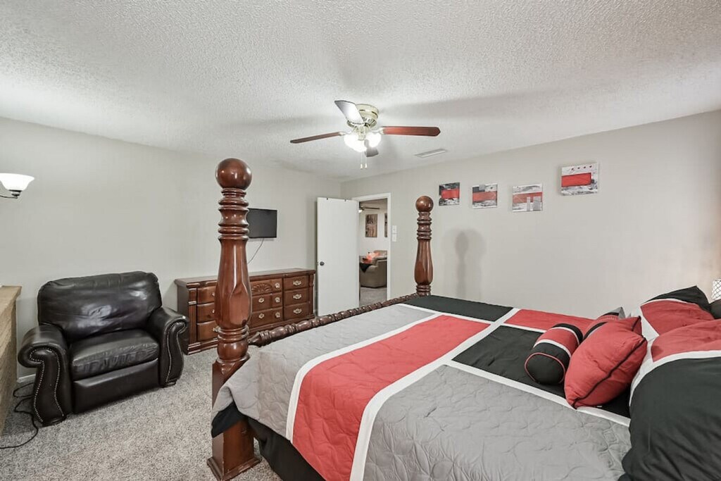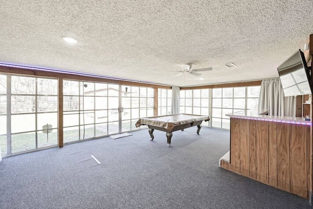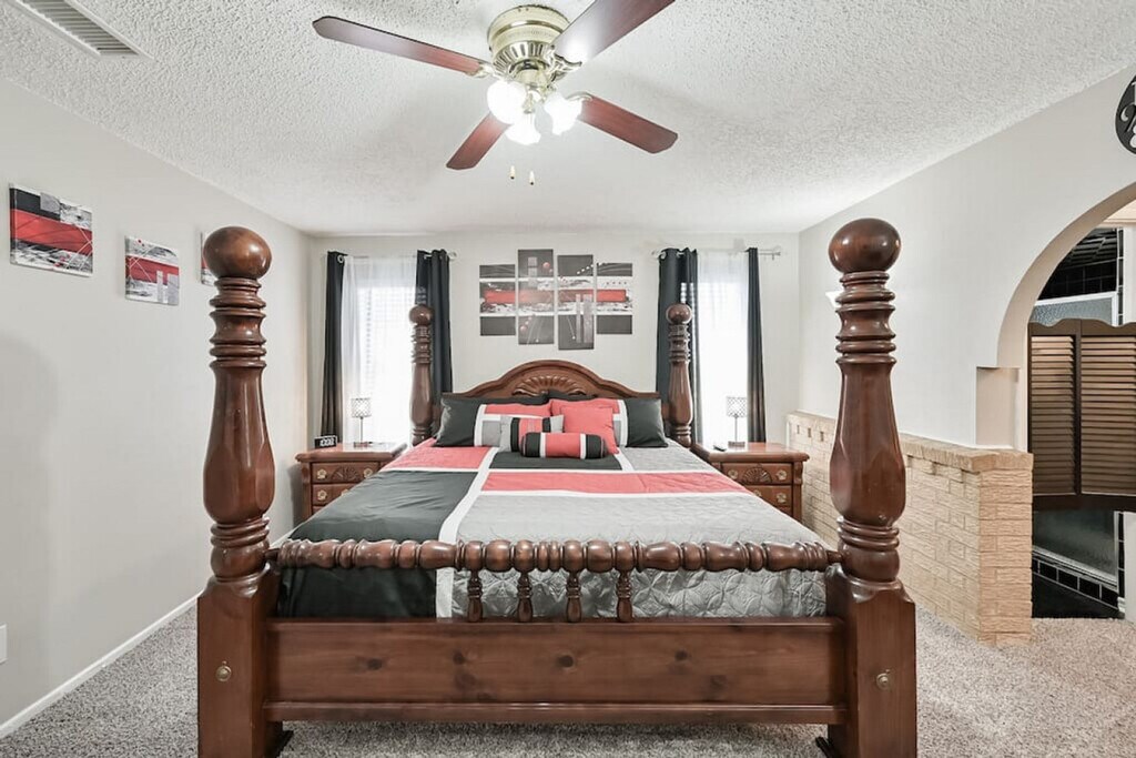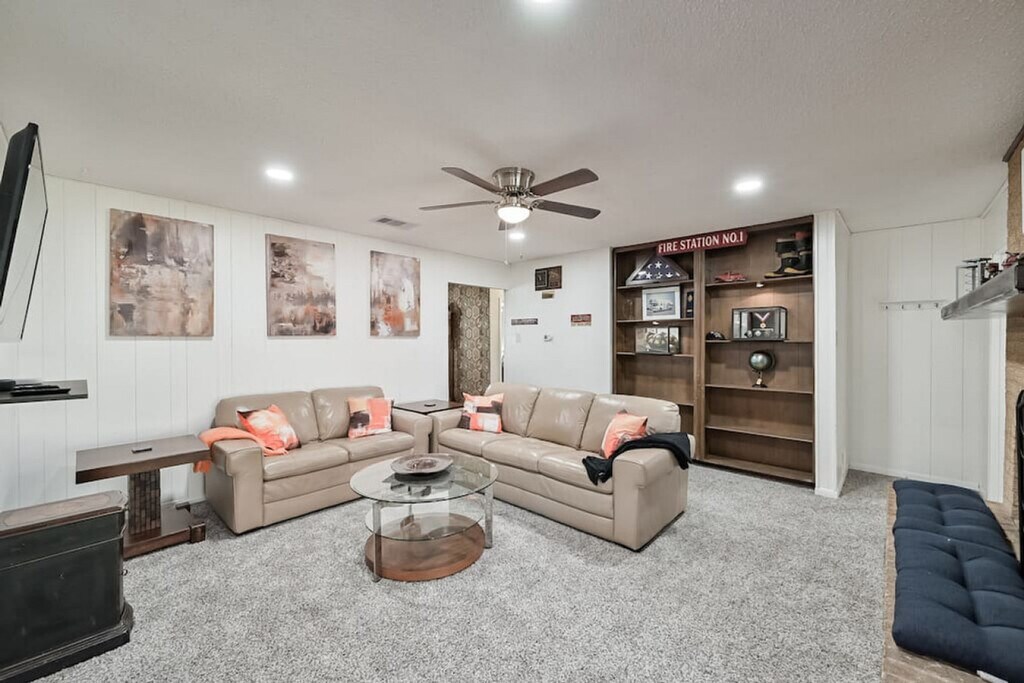 Welcome to this hidden gem, a 3-bedroom, 2-bathroom home located in a quiet neighborhood on the east side of Fort Worth. This charming residence offers three living areas, providing ample space for relaxation and entertainment. Feel at home as you explore the historic firefighter memorabilia that adds a unique touch to the ambiance. The property includes a 2-car garage and a driveway that can accommodate up to four cars, ensuring convenient parking options. The home features a game room complete with a pool table, dartboard, and bar area, perfect for entertainment. Each room is equipped with smart TVs for streaming or watching your favorite games. The fully stocked kitchen includes a Keurig Duo coffee maker, toaster, spice rack, and all necessary cookware and bakeware, making meal preparation a breeze. The master bedroom boasts a king-size bed and an en-suite bathroom with a stand-up shower, while the second and third bedrooms offer a queen bed and a full bed, respectively. The property offers parking in the 2-car garage and driveway, with additional street parking available if necessary. The garage can accommodate up to two normal-sized cars, and while garage opener remotes are not supplied, you can easily open and close the garage with a button inside. Situated on the east side of Fort Worth, this home provides easy access to local attractions and amenities. Enjoy the tranquility of the neighborhood while being close to everything you need for a comfortable stay. Check-in is after 4:00 PM and check-out is by 11:00 AM. The property enforces a strict no-smoking policy within the house or within six feet of any doorway. No pets are allowed. Unauthorized parties or events will incur an initial fee of $500, and guests may be asked to vacate the property immediately with no refund. Early check-in or late check-out requests must be approved in advance and may incur additional fees. The renter is responsible for any damages or additional cleaning expenses beyond normal wear and tear. The home is equipped with smart home locks, providing a seamless check-in and check-out experience with a custom code, eliminating the need for keys. [SI]