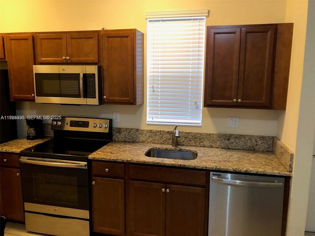 Studio with one parking space in the driveway. Two month's rent to move in (first month's rent and security deposit). Unit with private entrance in the resort style living: Kendall Square. Kitchen with granite and SS appliances. Washer and Dryer in the unit. Clubhouse with infinity pool, gym, Lake, park area. Close to retail stores and restaurants. Water and Electricity included. Close to the Clubhouse. Available now.