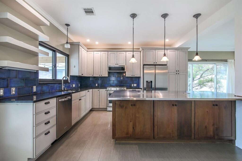 This thoughtfully designed home features stylish finishes throughout and an entertainer-friendly layout centered around a spacious kitchen with a large island and ample prep space. Two living areas offer flexibility for relaxing, working, or hosting guests. Enjoy outdoor living year-round on the covered back porch with vaulted ceiling and ceiling fans—an ideal spot to unwind or gather with friends. The oversized primary suite provides a private retreat, complete with dual vanities, a soaking tub, and separate shower. Wood and tile flooring throughout the main areas add both durability and warmth. Solar panels offer improved energy efficiency and help offset utility costs. Conveniently located just minutes from Dell HQ and Kalahari, with easy access to major employers including Samsung, Apple, IBM, and Amazon, as well as shopping, dining, and entertainment at The Domain. Zoned to Round Rock ISD schools. MLS ID 6625507