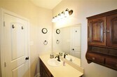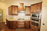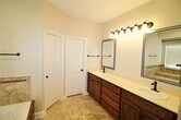 Welcome to this captivating single-story 3-2-2 residence, where stunning curb appeal meets comfortable, modern living. The impressive stone and brick facade, framed by mature trees and vibrant landscaping, sets a welcoming tone. Step inside the grand entryway, featuring a designer tile mosaic that leads into an inviting, open-concept floor plan. The home boasts a blend of elegant tile and rich, wood flooring throughout. The chef's kitchen is a true focal point, featuring beautiful granite countertops, custom cabinetry, tiled backsplash, and stainless steel appliances. The large, tiered island with a double sink is perfect for prepping and entertaining, offering a seamless view into the main living area, making entertaining easy. Retreat to the serene primary suite, offering ample space and lots of natural light. The en-suite bathroom is a spa-like escape, complete with an expansive double vanity, a separate glass-enclosed shower, and a deep soaking tub surrounded by elegant tile work. Enjoy the tranquil, fully fenced backyard, featuring a covered patio great for outdoor dining and relaxation. This home offers access to an array of resort-style amenities. Residents can enjoy the community clubhouse, a refreshing pool, and multiple courts for sports enthusiasts, including basketball, pickleball, and tennis courts. Take advantage of the scenic walking trails that wind around gorgeous ponds, perfect for evening strolls and outdoor activity. Only small pets allowed with owner approval. 12 month lease term only.