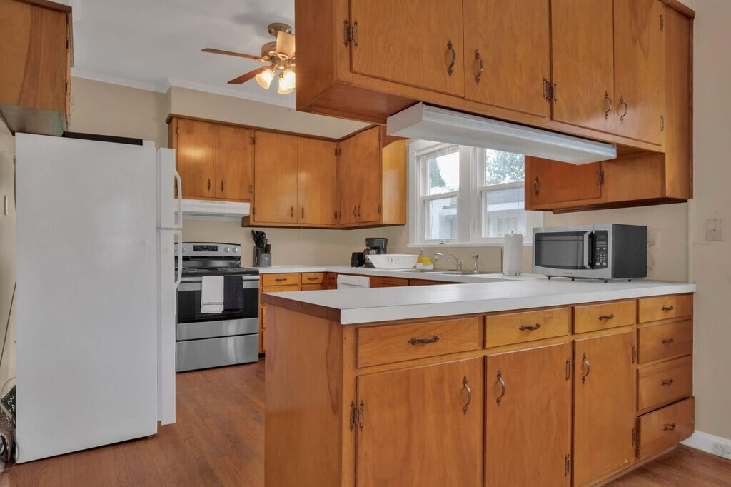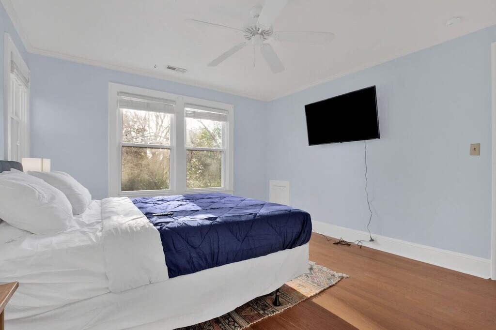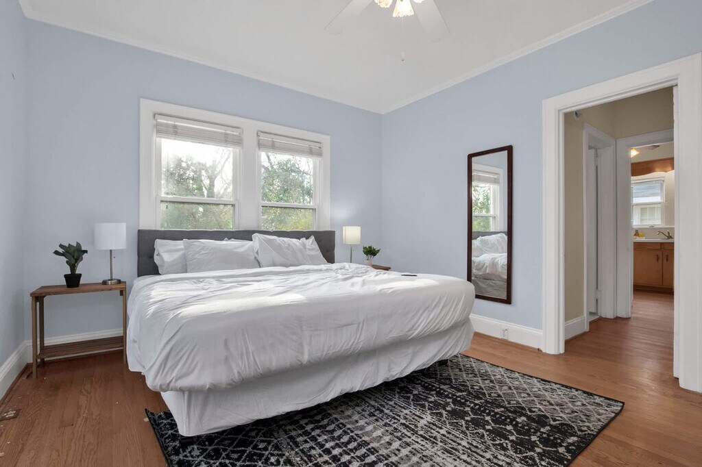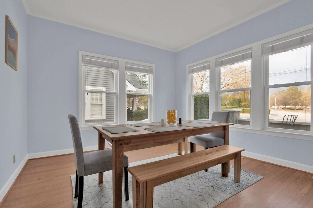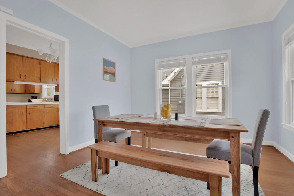 You'll feel at home in this charming 4-bedroom, 2-bath craftsman in the Historic Haymount District. Appreciate the details of this 1930s build with so many vintage touches and updated maintenance. A short flight of stairs will lead you to the covered front porch. Spacious rooms with lots of windows, a full kitchen, and plenty of counter space are perfect for those who enjoy cooking. The beautiful living room features a large TV and Roku. The fully equipped eat-in kitchen has all the essentials. Adjacent to the kitchen is a laundry room for added convenience. A welcoming formal dining area with seating for up to six is perfect for sharing meals and creating lasting memories. The backyard oasis is fully enclosed with a fence, where you'll find a grill and a picnic table. Pets are welcome with a non-refundable pet fee. Nestled within the historic Haymount District, this home is situated in a charming residential neighborhood that exudes character and warmth. As you explore the area, you'll be greeted by the allure of mature trees lining the streets and the timeless beauty of vintage craftsman-style homes. This neighborhood is a treasure trove of local favorites, providing you with easy access to the best attractions and amenities our city has to offer. It is located just minutes from downtown Fayetteville and within walking distance to local dining and shops. Quiet hours are between 10 PM and 7 AM. If our cleaning crew reports any signs of smoking cigarettes, vapes, e-cigs, pipes, etc. (smell, ash, etc.) in or around the home, an automatic $500 damage charge will be incurred. The same charge applies if cigarette butts are found outside of the home. If marijuana is smoked in or around the home a $500 fee will be charged, and details about the reservation may be turned over to the appropriate authorities. Parties are prohibited at the home. Other events are permitted at the home only with prior approval. If you violate quiet hours and disturb the neighbors, we will cancel your reservation; you will be required to leave the property immediately and you will not be eligible for any refunds. There is a $100 charge for third-party trash removal if an excessive amount of trash is left at the property. If there is evidence of pet hair on the furniture, excess hair in the home, stains, or waste found in the yard or home, you will be charged the cost to clean this. You must be at least 21 years of age to rent this property. [SI]